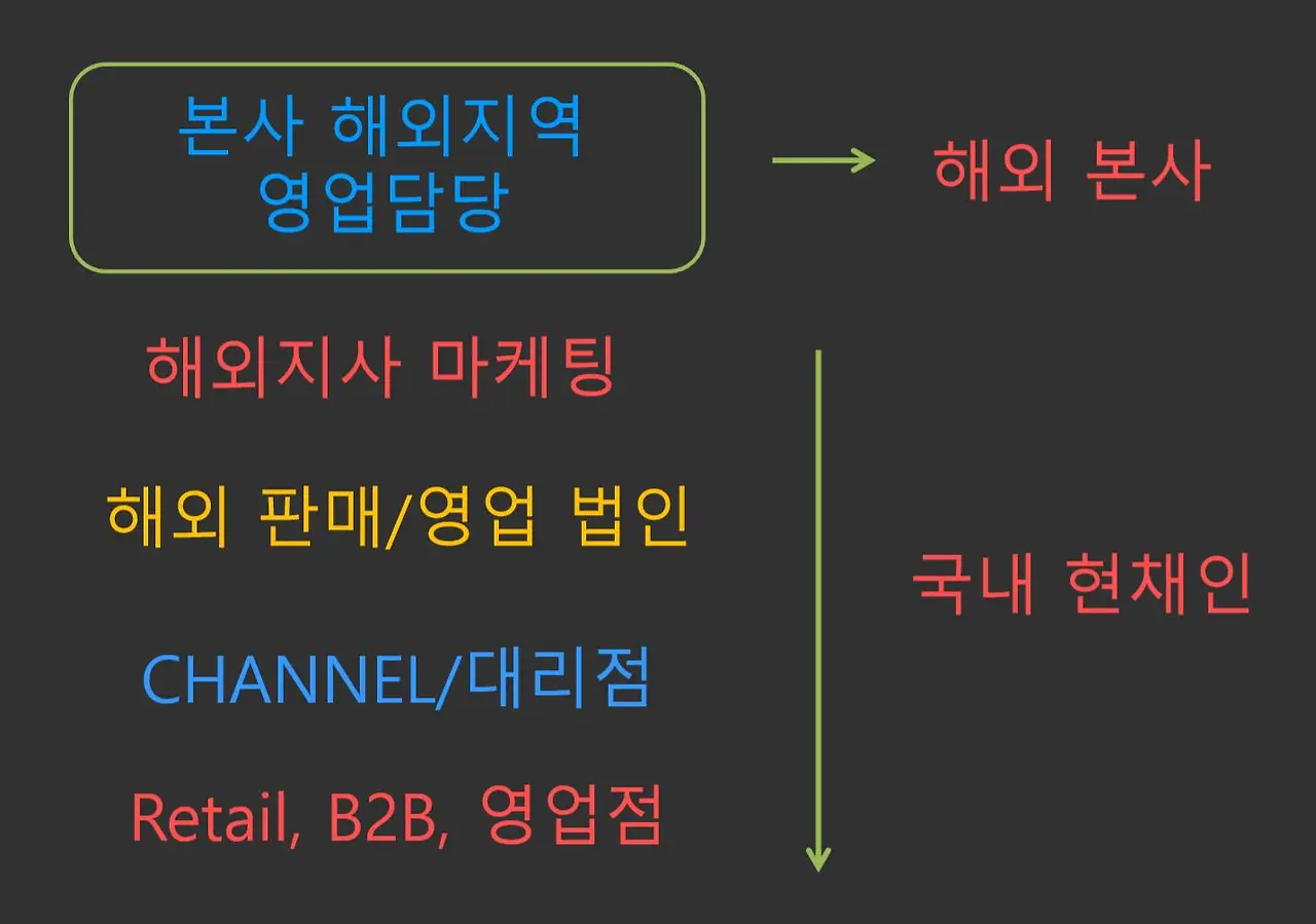 정리하여 이야기하자면 국내 소재 외국계 기업에서 일하게 된다면 국내 영업/판매법인에서 현지채용된 인력으로서 일하는 것이다. 그리고 그 가운데 영업점/대리점 격인 최전선인지, 아님 그들을 관리하는 지역 영업관리인인지, 아니면 국내의 총판을 담당하는 마케팅관리자인지 세부적인 사항에 대한 점검이 필요하다.