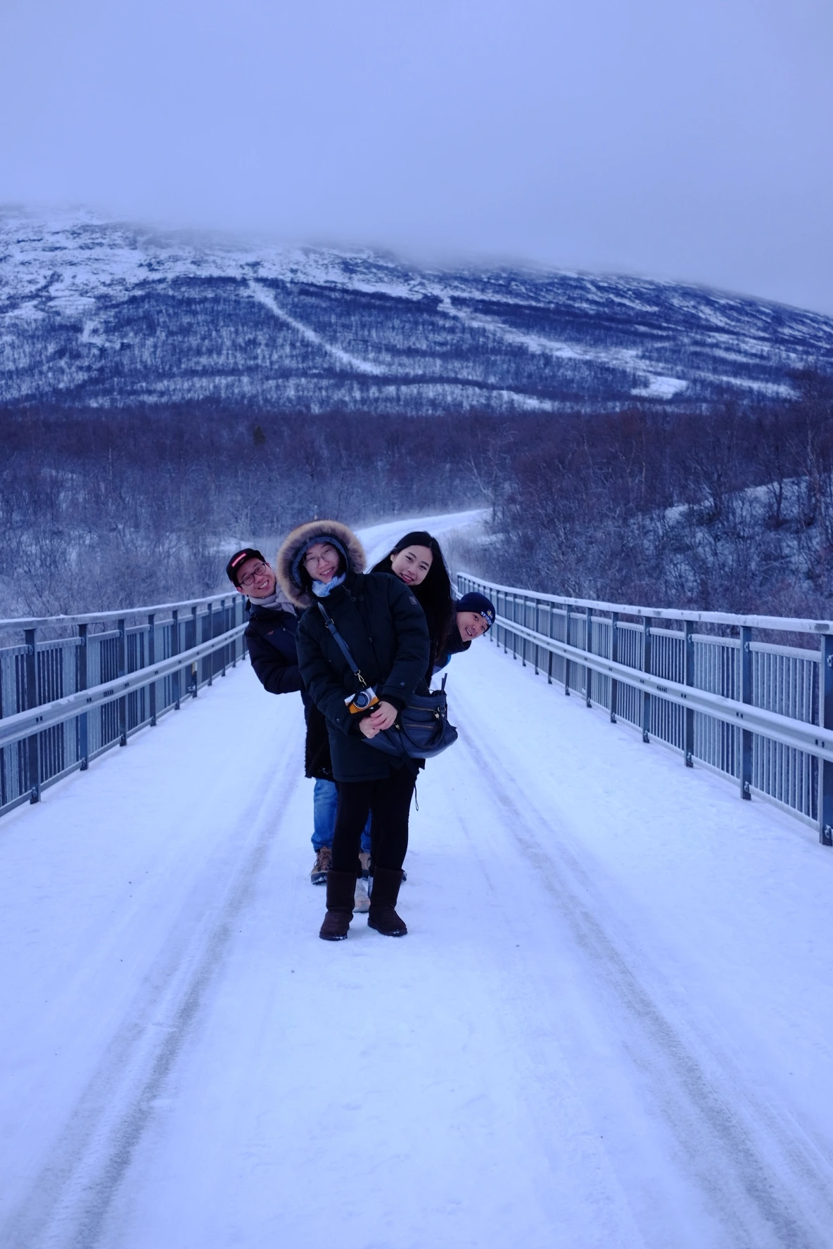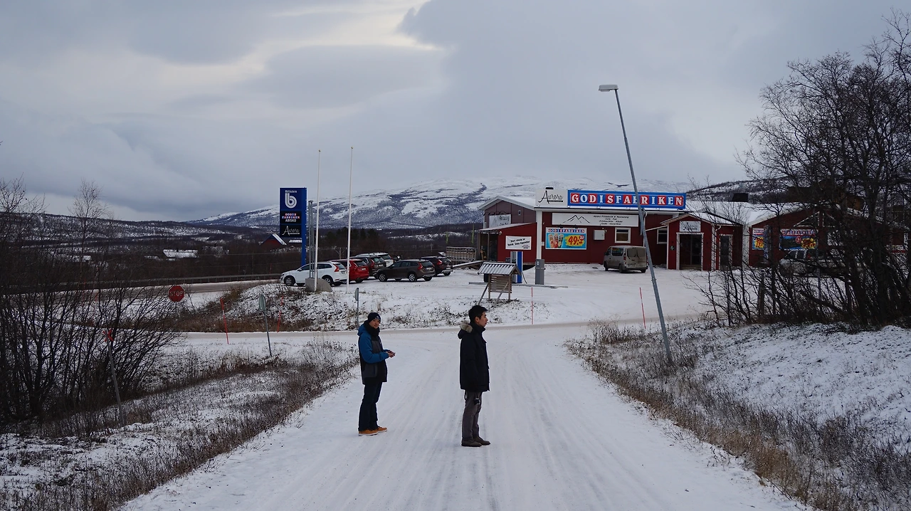 다음날 우리는 숙소 주변 호수로 나왔다. 이곳이 북극권 넘어서이고 지금이 겨울이어서 그런지 완전히 화창한 하늘은 본 적이 없는 것 같다. 그저 모든 것이 죽은 듯이 조용하고 잠잠했다. 우리는 이곳에서 1.5km를 떨어진 내가 처음 묵었던 아비스코 마운틴 스테이션 왕의 길로 향하였다. 그곳을 향하며 동행인 H가 K에게 자신의 사진을 부탁했다. 자연스런 사진을 찍어달라고. 나도 함께 찍었다. 눈 덮인 북극권의 길에서 어딘가를 바라보고 있는 아주 자연스러운 사진을 부탁했다. 그리고 사진은