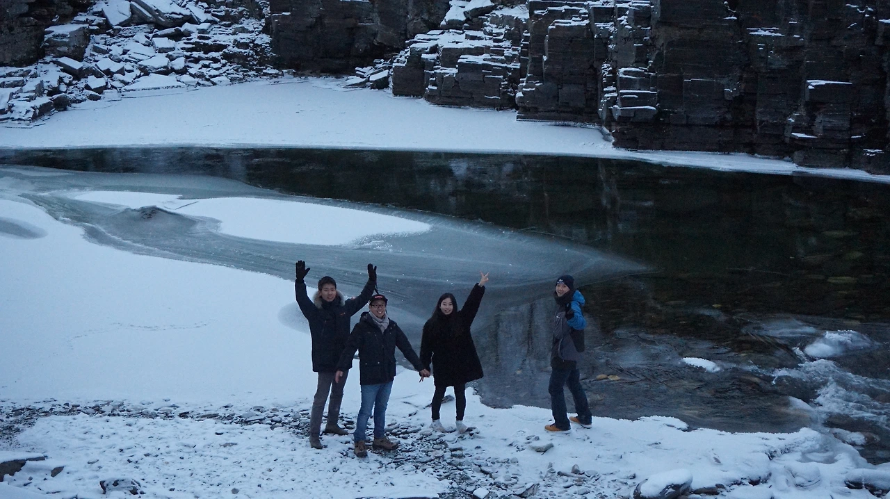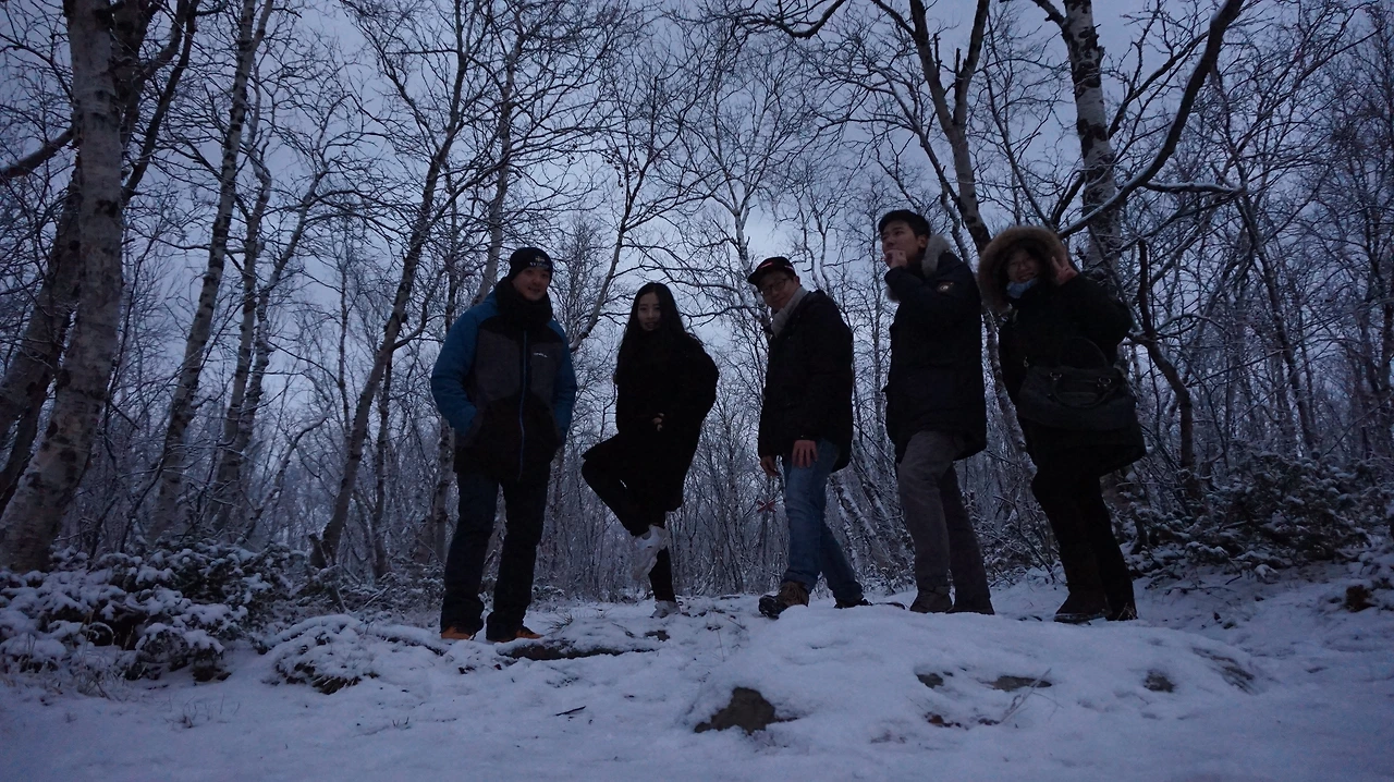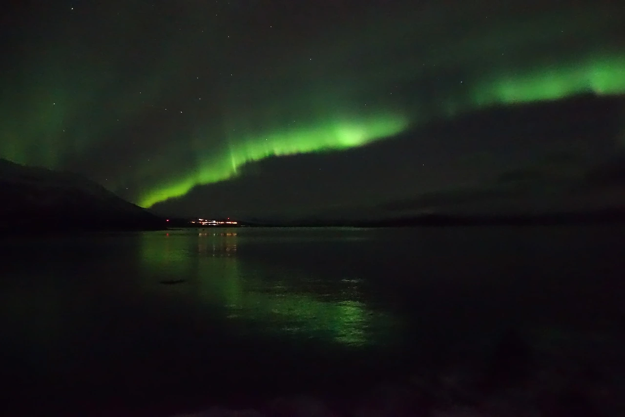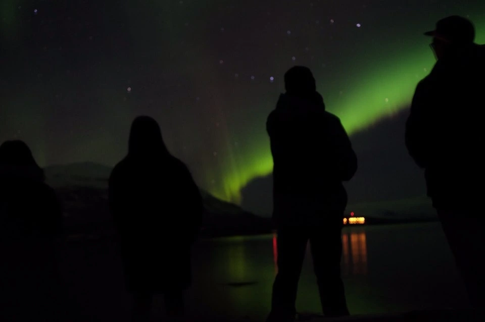 창밖을 보니 과연 길고 긴 오로라가 꽃을 피우기 시작했다. 우리는 즉시 밖으로 나가 호숫가에서 낮에 준비한 땔감에 불을 지폈다. 그리고 하늘에 걸려있는 오로라를 보았다. 하늘 한쪽 편에서 다른 한쪽 편으로 길게 늘어선 오로라는 말 그대로 생물처럼 움직이고 있었다. 그 모양이 하늘에서 피고 있는 꽃처럼 봉오리가 점점 벌어지고 있었다. 모두들 넋이 나간 듯 하늘만 쳐다볼 뿐이었다. 그 꽃봉오리가 전부 다 피고 하늘로 올라가 살아질 무렵 다른 한쪽 편 산 뒤에서 오로라가 다시 나타나기 시작하더니 호숫가 위를 거쳐 병풍처럼 우리 앞에 펼쳐졌다. 그 모습이 마치 누군가가 하늘 위에 두루마리를 펼친 것처럼 너무 생생해 보였다. 그저 이러한 모습을 볼 수 있는 것에 너무 감사함을 느꼈다.