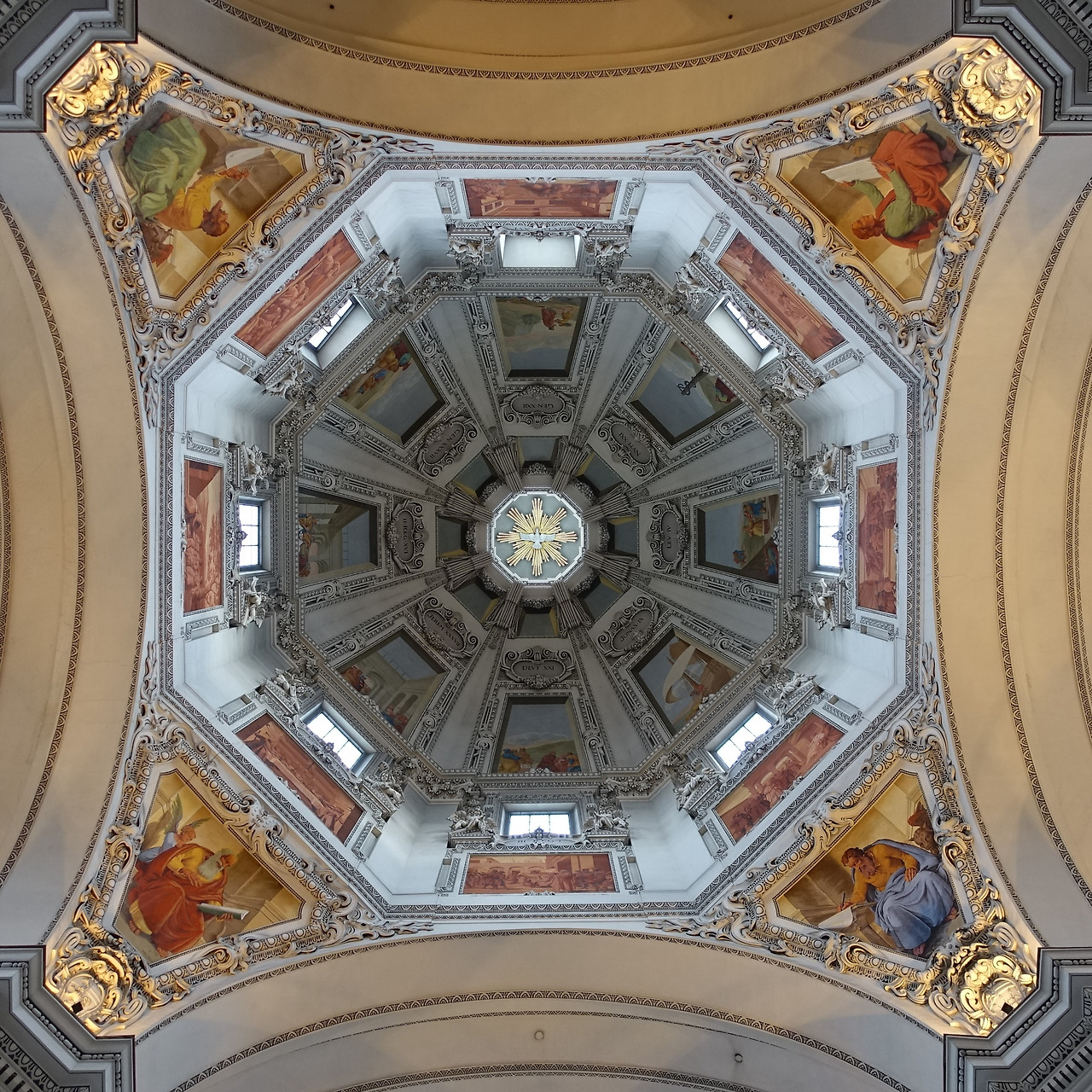 성당, 타워 등의 첨탑 중앙 아래에서 상단을 올려다 보면서 찍은 사진들이다.
