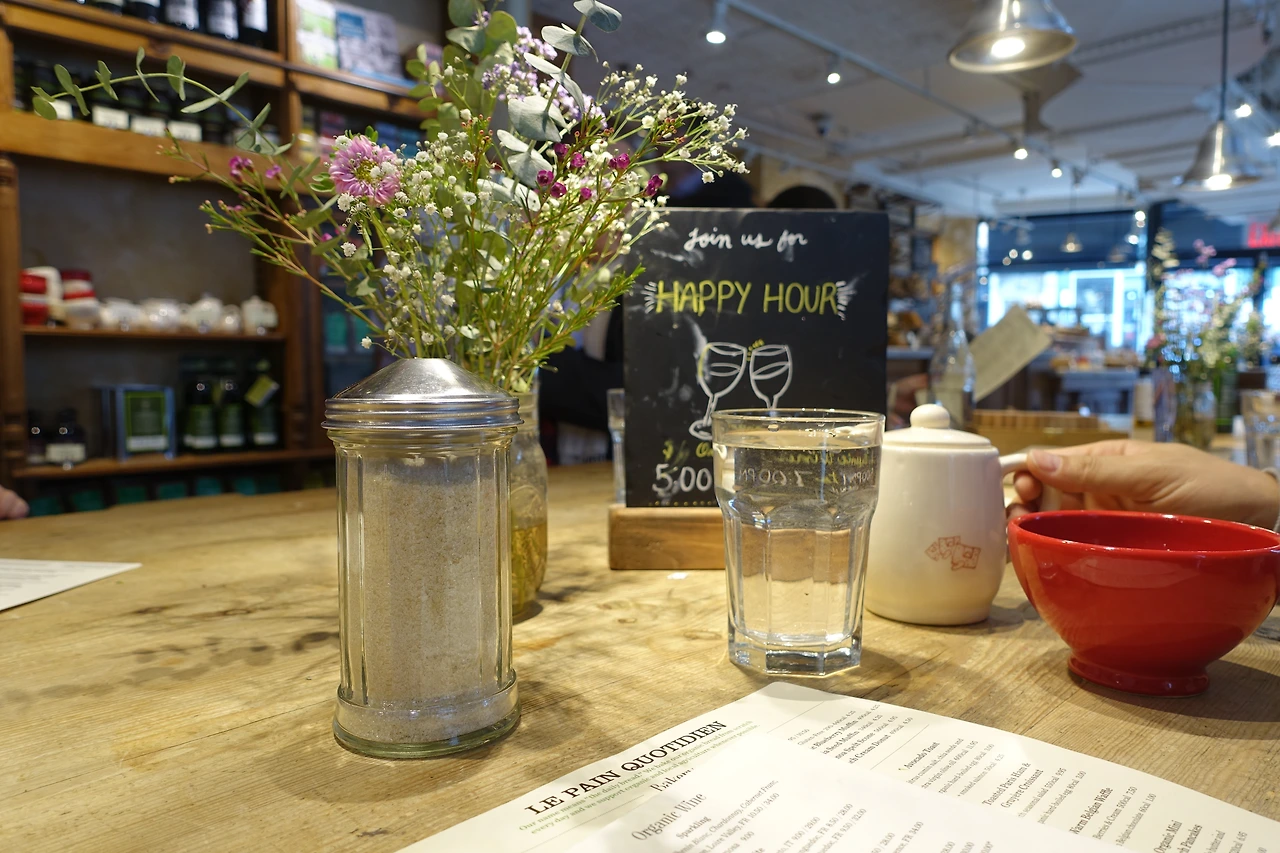 1990년 벨기에 브뤼셀에 첫 매장을 시작으로 지금은 전 세계적으로 지점이 있는 유명 프랜차이즈이다. 미국에선 1997년 뉴욕 매디슨 에비뉴(Madison Avenue)에 처음 오픈하였으며 지금은 뉴욕에만 약 20개의 매장이 있어 뉴요커들의 아침 식사와 커피를 책임지고 있다. 프랑스 어 ‘Le Pain Quotidien’은 영어로 ‘the daily bread’라는 뜻. 홈메이드 브래드, 샌드위치, 크림 슈, 커피, 차 등 브런치와 디저트 메뉴가 상당히 다양하며 매장 한쪽에는 이곳의 명성을 확인할 수 있는 요리도구, 식재료, 레서피, 자체 제작 요리 서적, 컵과 용기까지 다양한 기념품을 판매한다. 크리스마스 시즌이 되면 시즌 한정 컵이나 용기도 판매하는데 그 모양이 상당히 괜찮다. 센트럴파크 내에도 이미 자리잡고 있으며 맨해튼 남부에서 센트럴파크까지 곳곳에 약 20개의 매장이 있기 때문에 어디서나 쉽게 접할 수 있다.