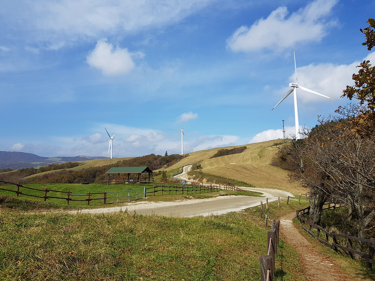 먼저 목장에서 운영하는 버스를 타고 산 정상까지 올랐다. 새파란 하늘과 초록색 잔디, 그 사이를 둘러싸고 있는 산과 산을 따라 일직선으로 늘어선 풍차들이 장관을 이루었다. 계속 걸어 내려오면서 만난 양떼. 토실토실 뭉게뭉게 구름은 파란 하늘에만 있는 게 아니었다. 초록 잔디밭에도 구름은 있었다. 아장아장 걷는 모습, 한가로이 풀을 뜯고 있는 모습이 귀엽고 온순하게만 느껴졌다. 나도 양띠인데...