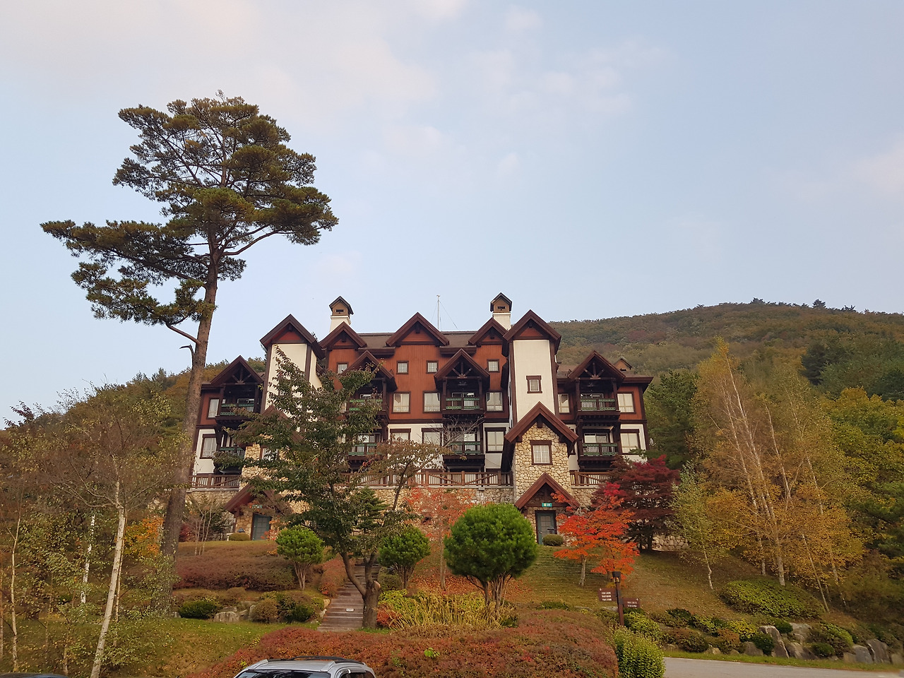 가을 아침 햇살에 눈을 떴다. 창문을 열어보니 마치 알프스에 온 것과 같이 산과 나무, 산장이 조화를 이루었다. 코로나 19로 해외여행에 발이 묶인 상태이기에 아쉬운 대로 강원도 여행을 왔다. 그동안 국내는 잘 돌아보지 않았기에 대한민국의 관광지가 이렇게 좋은 줄 몰랐다. 아침에 조금 일찍 일어났는데 산책도 할 겸 리조트를 돌아보았다.