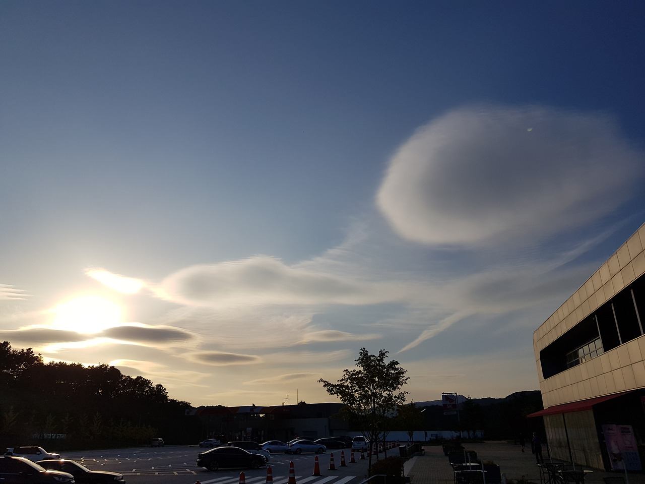 다음날 서울로 돌아오는 길. 하늘의 구름이 갖가지 모습을 뽐낸다. 때론 시원해 보이기도 하고 때론 잔잔해 보이기도 하고 때론 그림처럼 특이해 보이는 구름이 집으로 돌아오는 길을 더욱 재미있게 해주고 있었다. 신기한 것은 밝은 날 본 무지개였다. 멀지 않은 곳에 있는 것처럼 조금만 더 달리면 손에 잡을 수 있을 것만 같아 신기했다.