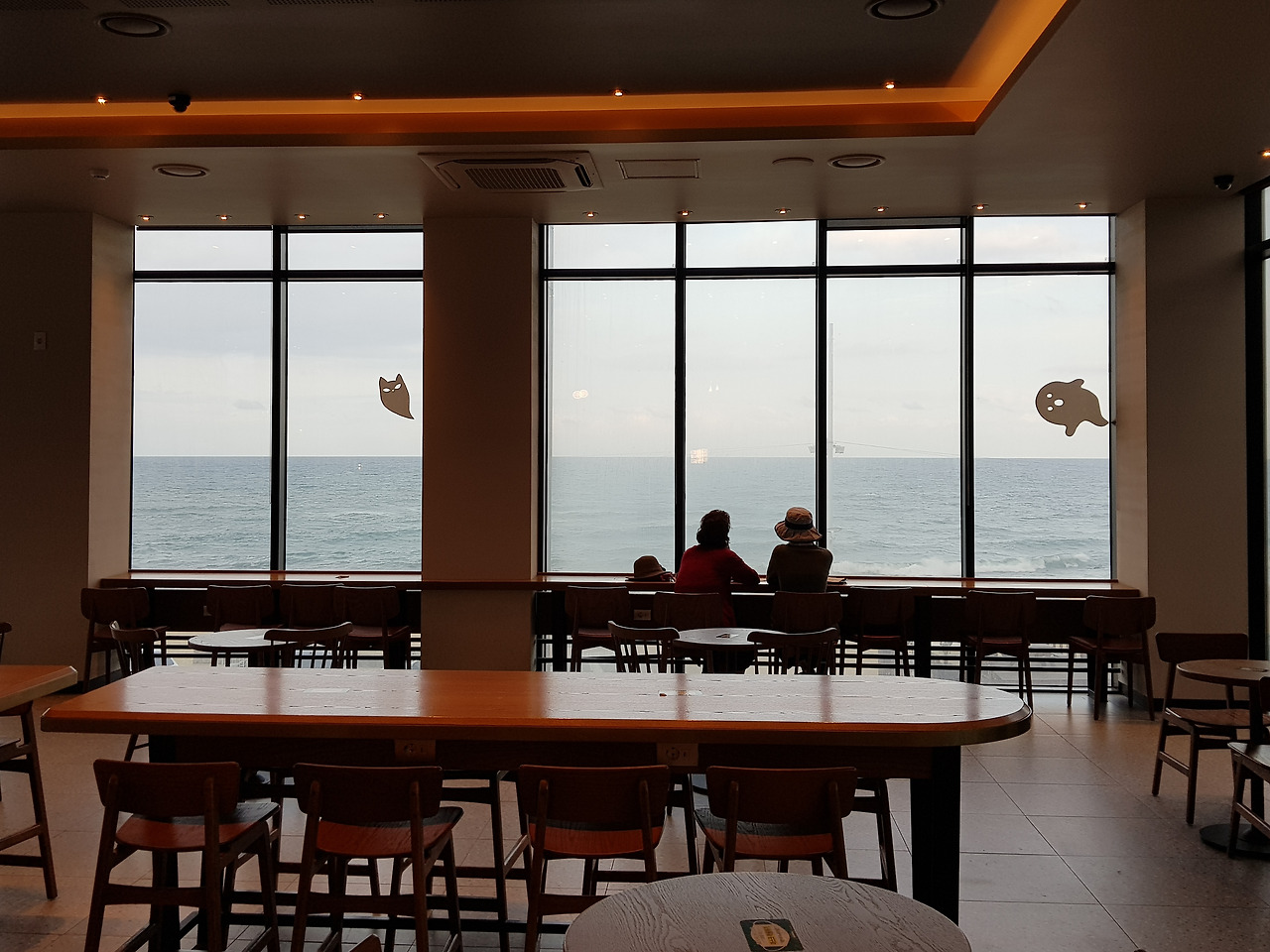 이제 차가워진 몸을 녹이고자 강문해변 앞에 있는 카페에 들렀다. 창밖으로 펼쳐진, 나의 눈높이보다 높아 보이는 바다 수평선. 그 수평선을 바라보는 사람들. 그 사람들을 나는 관찰하고 있다. 창가에 나이가 조금 있어 보이시는 아주머니 두 분이 커피를 마시면서 담소를 나누시는데 그 모습이 너무 고와 보인다. 그리고 행복해 보인다. 곱게 늙는 것 그리고 그때 마음에 맞는 한두 명의 친구는 거창하진 않지만 진정한 축복처럼 느껴진다. 부디 지금의 친구들과도 저렇게 아름다운 관계로 영원히 지속되었으면 좋겠다.
