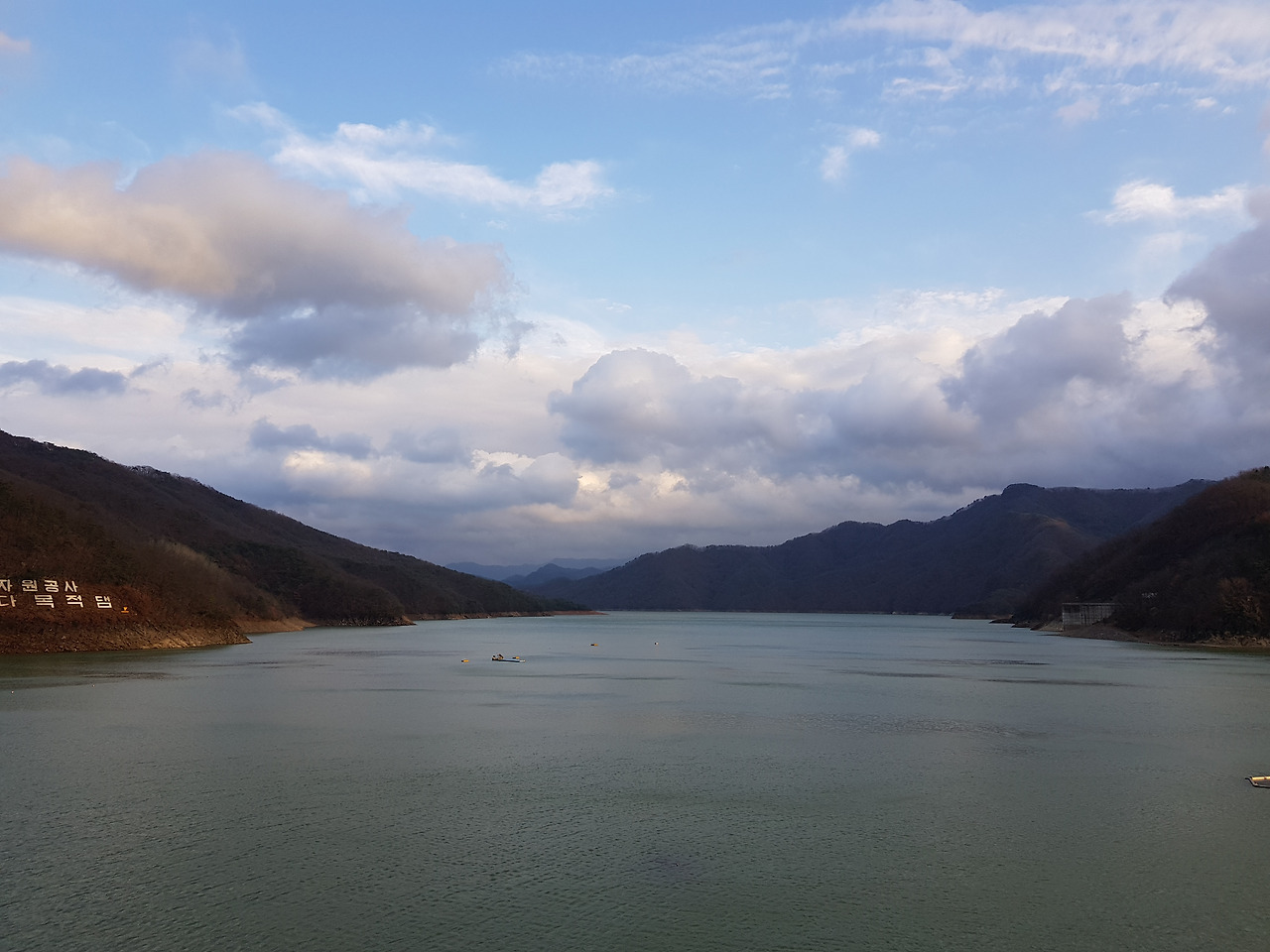 댐 위에서 아래 소양강을 바라본다. 강줄기가 길어 보인다. 이 강은 돌고 돌아 한강으로 이어지고 나의 집까지 닿을 것이다. 강을 따라 산과 구름이 펼쳐진다. 세찬 바람에 구름이 빠르게 이동한다. 그리고 구름이 이동하던 중 한 줄기의 빛이 새어 나온다. 날이 저물어갈 무렵이기 때문에 산과 구름, 호수, 강 모두 어둑어둑해지고 있었는데, 한 줄기의 빛이 뚜렷하게 비춘다. 구름이 또 한 번 나를 축복해 주는지 그 빛이 내 발밑을 향하고 있다. 그렇게 자연은 나에게 너무 멋진 선물을 주고 있었다.