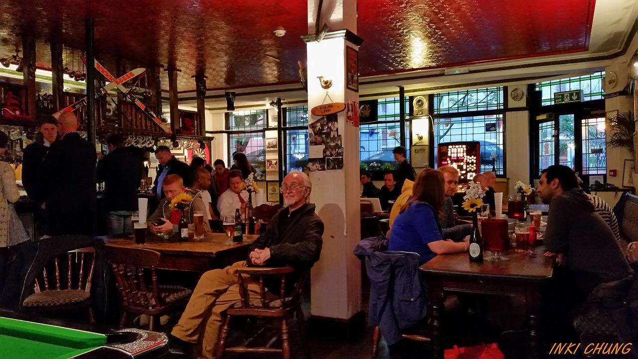 → 작년 11월에 찍은 왼쪽 사진 왼쪽 끝의 할아버지를 같은 펍에서 올해 5월에 다시 보았다. (오른쪽 사진 가운데) 그 할아버지는 약간 어색하지만 그때나 지금이나 나름 포즈를 취해주고 계셨다.^^