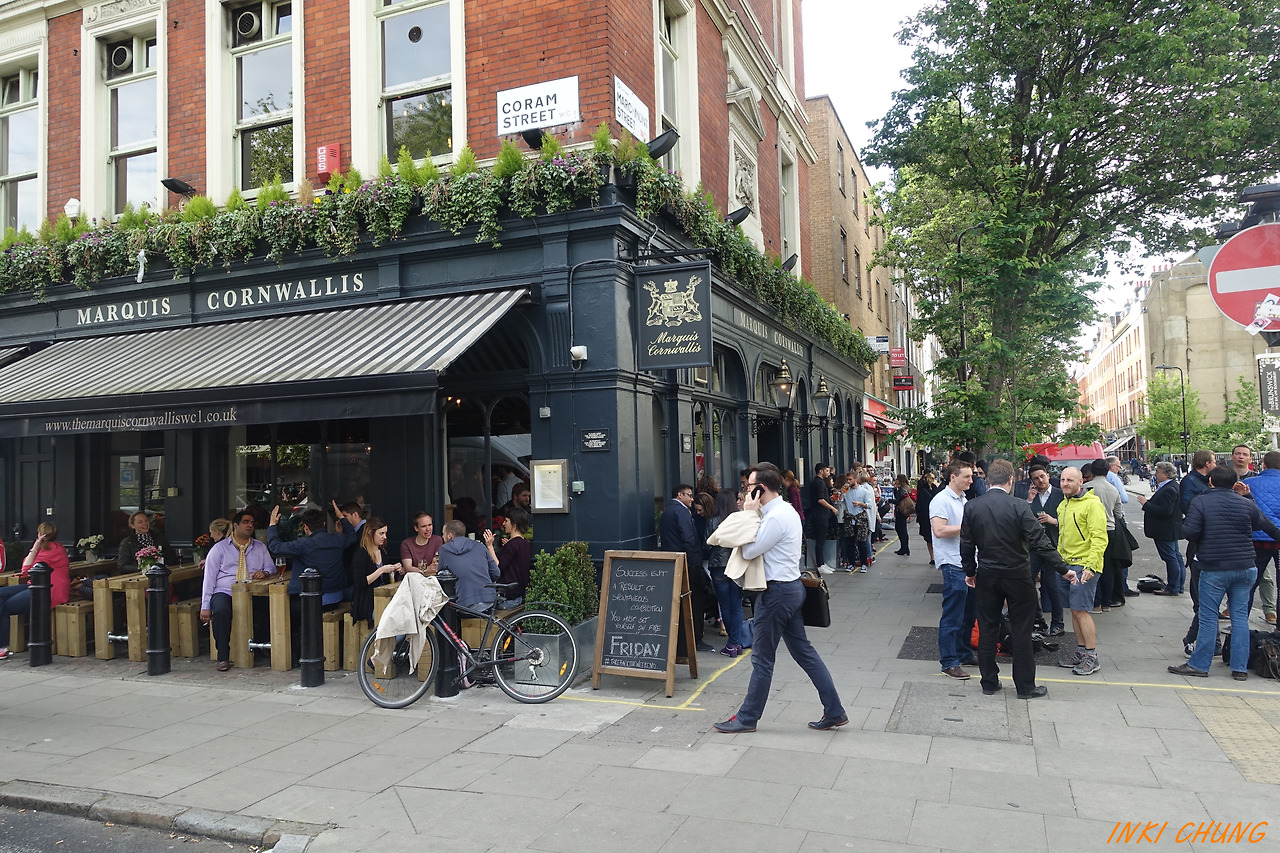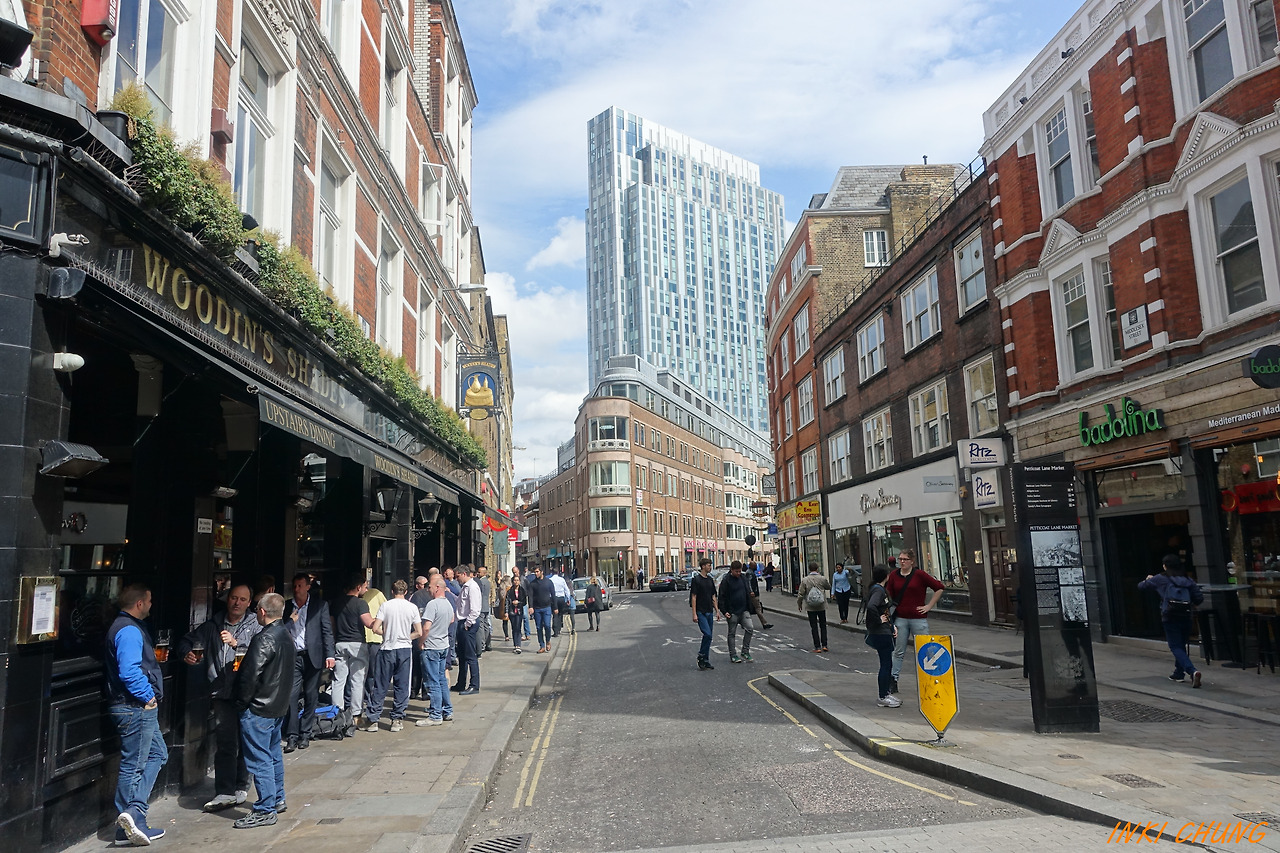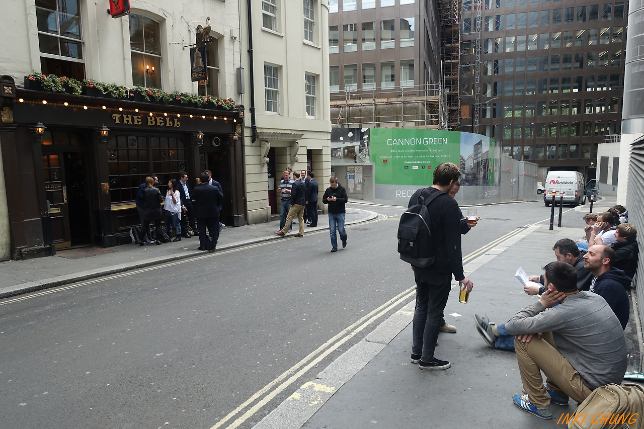 어떤 나라에서는 길거리에서 맥주를 마시면 벌금을 부과한다. 하지만 맥주가 생활의 일부인 런던만큼은 아니다. 어쩌면 오늘 하루의 일과가 이들의 이야기 꺼리 일 수도 있고, 요즈음 분위기 물어가고 있는 이성교제에 대한 이야기가 화제일 수도 있을 것이다. 하지만 어김없는 모습은 손 위에 맥주를 들고 길가에 서 있다는 것이다. 넥타이에 정장 차림, 정장 차림에 배낭을 맨 채 하루의 스트레스를 맥주 한잔으로 날려버리는 모습이 자유로워 보인다. 이들은 저녁 7시가 되기 전에 헤어질 것이다. 그들의 가족이 기다리는 집으로……