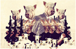 그 후 돼지들은 두발로 걷고 채찍을 들며 선동을 통해 동물농장을 지배하게 된다.