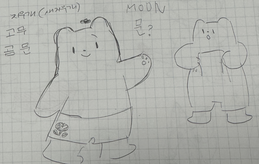 '문' 은 지우개 소재 중 '고무'와 동물 '곰'의 글자에서 아이디어를 얻었습니다.