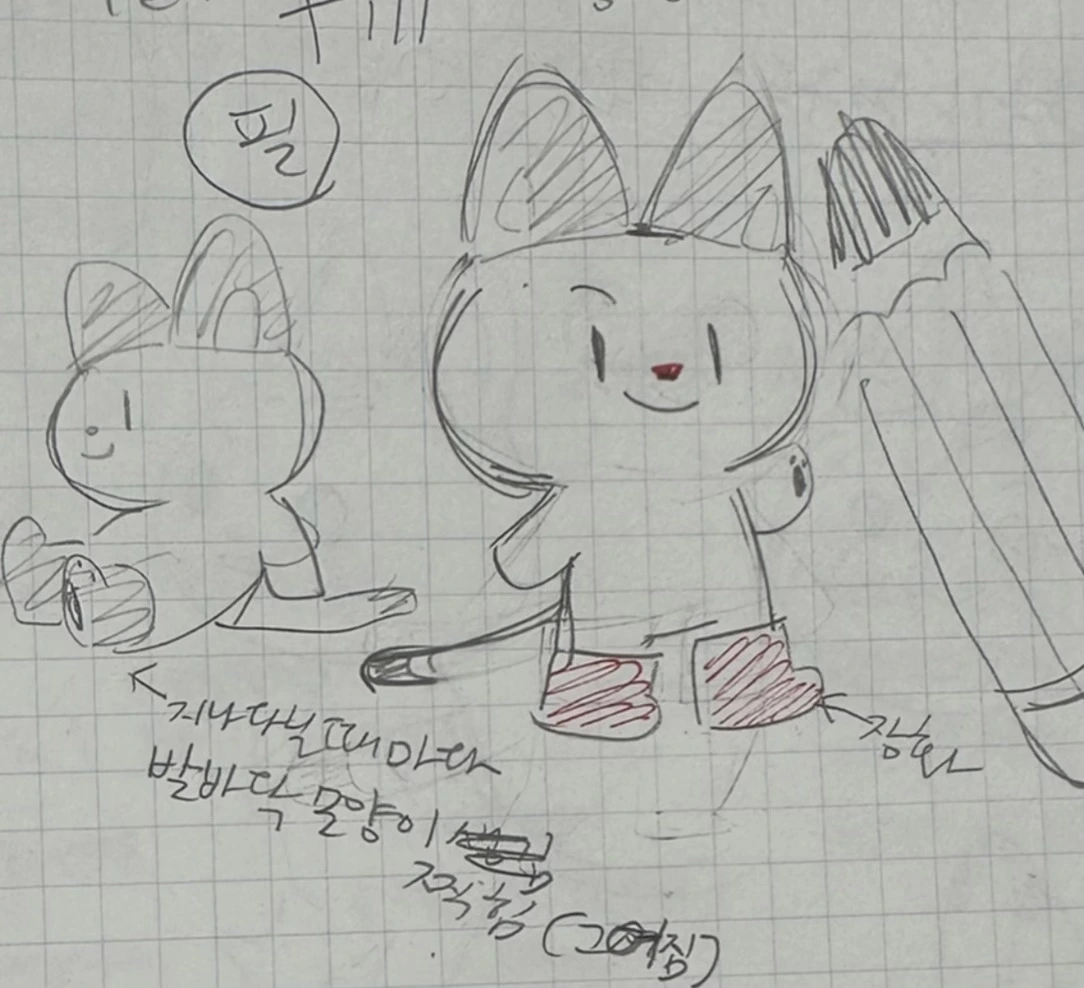 손의 흑연만 제외했어요. 귀와 꼬리, 발바닥 부분을 연필처럼 검은색으로 디자인했습니다.