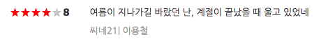 영화를 보고 나면 네이버 평론가 평점을 한 번씩 본다. 평론가들의 5~6줄의 글도 있지만 한 줄로 요약한 문장을 보면 가끔씩 감탄이 나오는 문장들을 발견하기 때문이다.