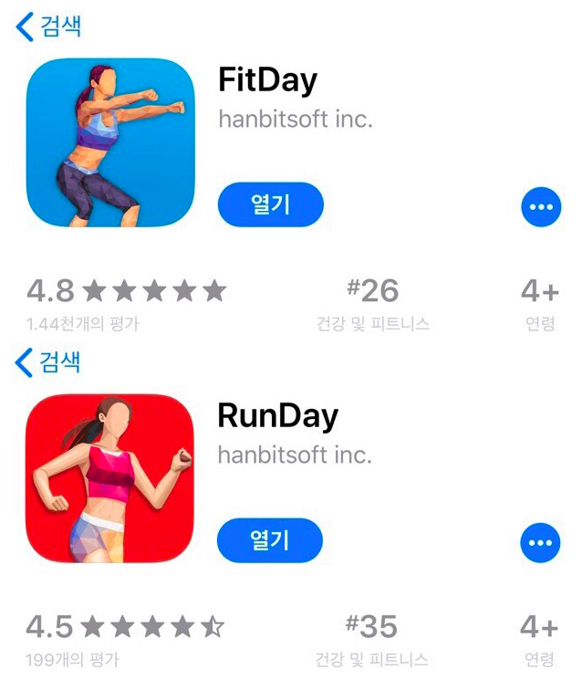 요즘 주 7일 중 6일은 운동을 한다. 야근을 하면 단 10분이라도 집에서 홈트레이닝을 한다. (일주일하니까 1kg빠지더라... 샹... 나이드니까 더 힘들다.) 홈트레이닝을 위해 쓰고 있는 앱은 'FitDay'와 'RunDay'다. 나중에 이 두 앱만을 위한 글을 써보도록 하겠다.