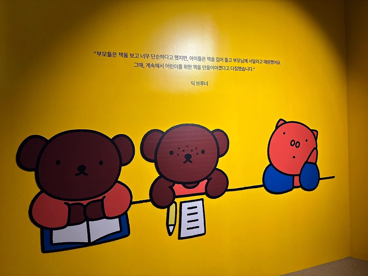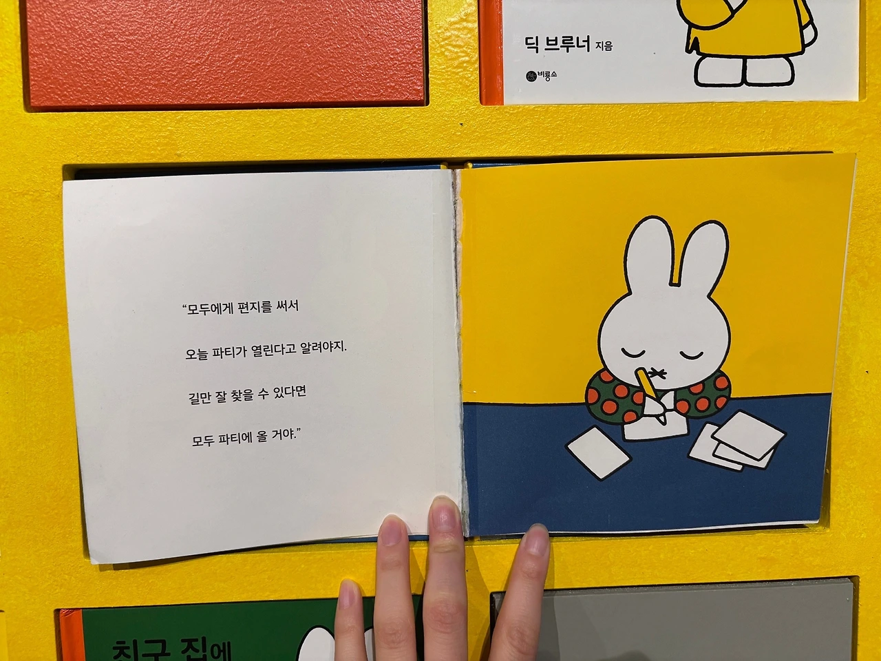 아이들이 마음껏 상상할 수 있도록 상상의 세상을 넓은 들판에 풀어두셨더라. 나 역시 전시를 보는 내내 미피 너와 함께 마음껏 뛰어 노는 것 같아서 즐거웠어.