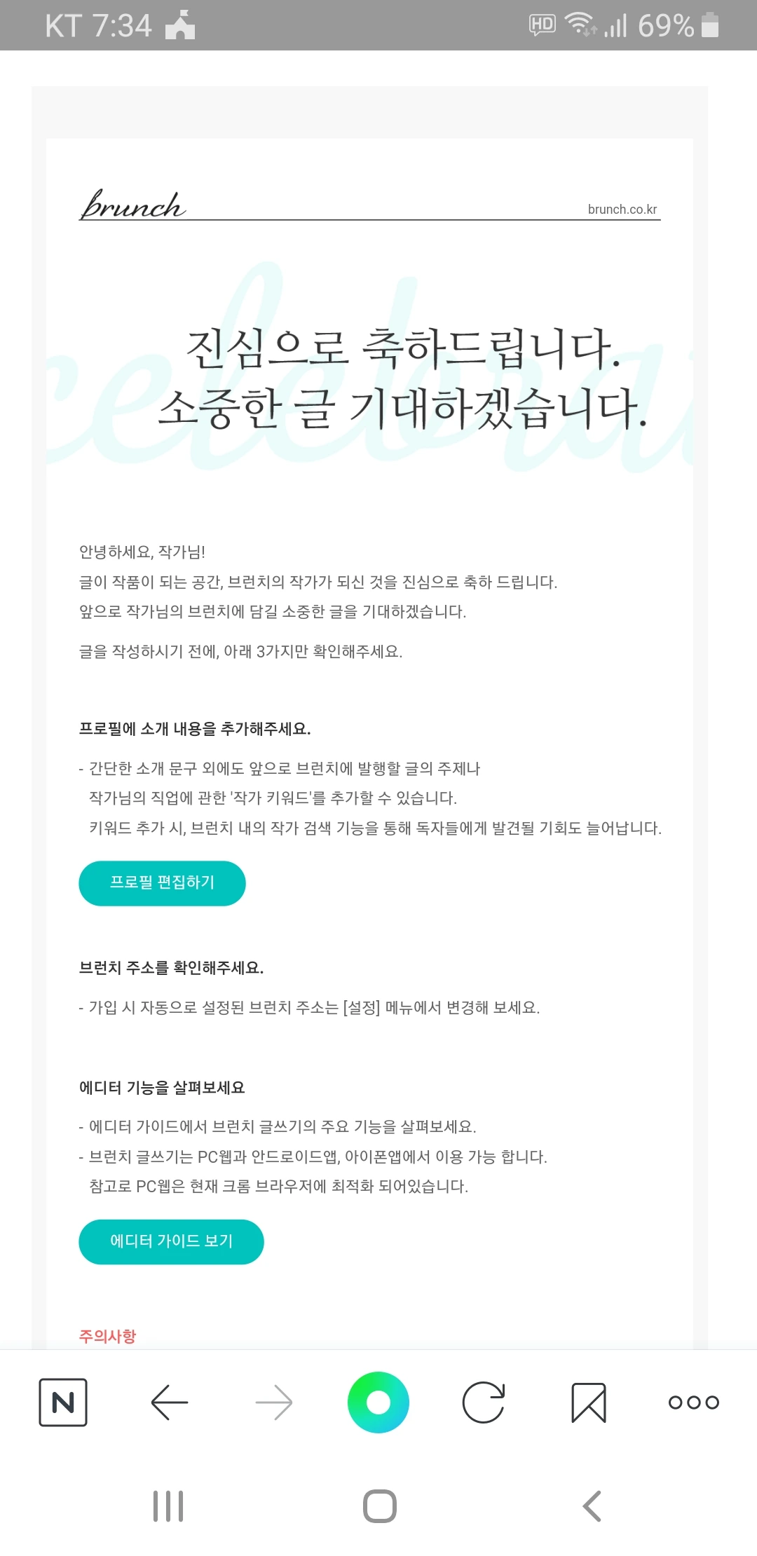 브런치 화면이었다.