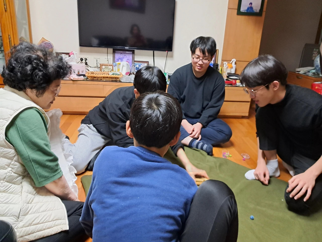 동생네 가족까지 모이니 세 자매 부부 6명, 손주 8명으로 집안이 꽉 찬다. 상기된 표정으로 모처럼 모인 감회를 나누고, 그간의 안부를 묻느라 분주하다. 고만고만한 10대 남자애들 7명, 대학생이 된 여자애 한 명인 손주들은 벌써 끼리끼리 모여 윷놀이를 하며 웃음꽃이 만발한다.