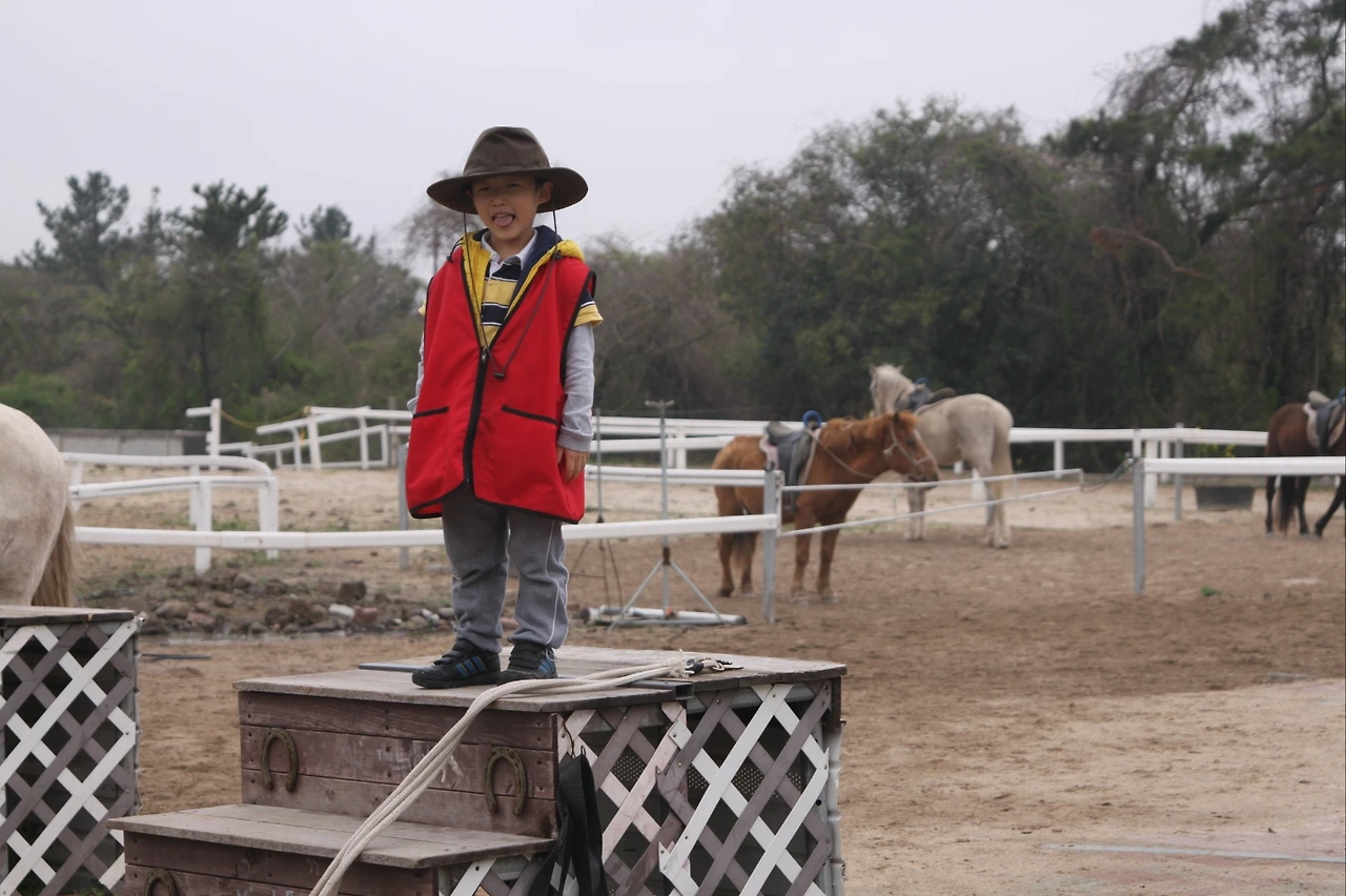 아이는 갑자기 신발을 신으며 씨익 미소를 짓는다.