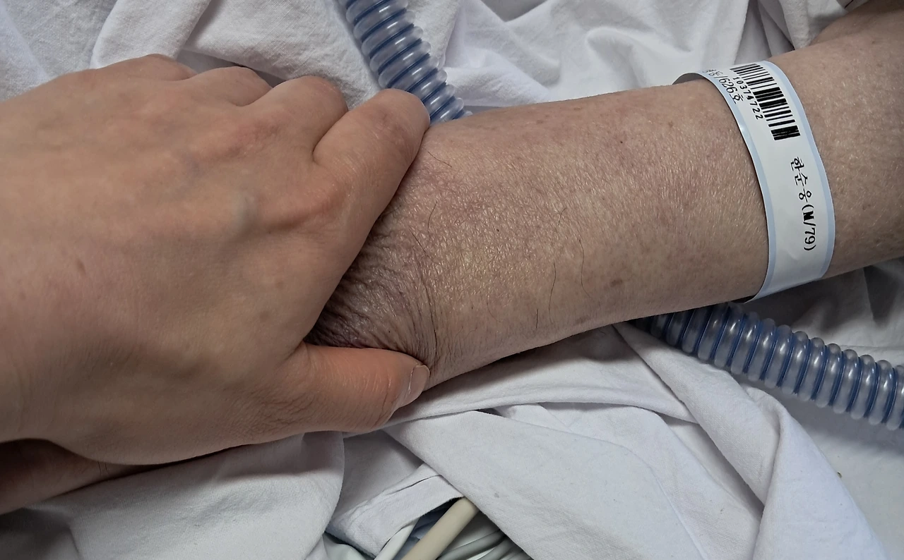 치료실 안에 에어컨까지 켰건만 아빠의 온몸은 땀에 흠뻑 젖어 있었다. 마지막으로 찾아올 손주를 기다리느라 당신의 온 힘을 다해 버티시는 아빠.
