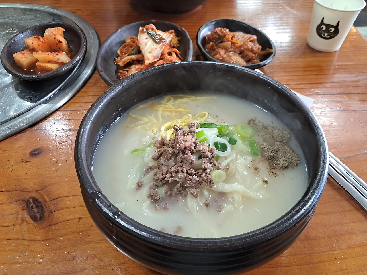 가는 길에 아들과 함께 들러 점심을 먹었습니다. 유명산 입구에서 가까운 사골칼국수집. 할아버지 사장님이 오래된 식당을 지키시는 모습에서 자부심이 느껴졌습니다.
