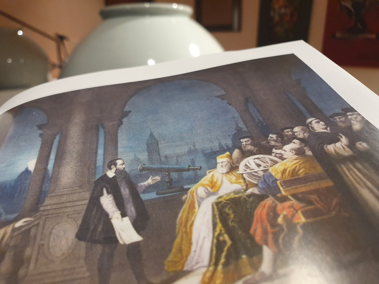 갈릴레오 갈릴레이가 베네치아 원로원에서 교황에게 천체를설명히는 모습.데토우체 작품