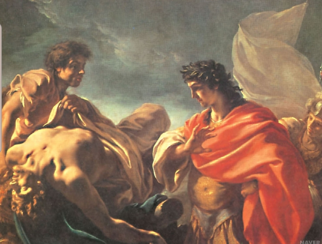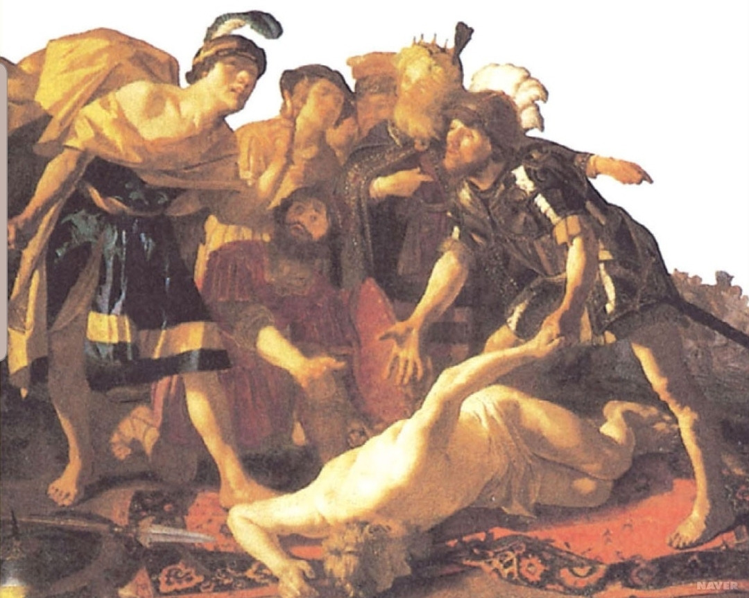 트로이 성벽 앞에서 친구를 죽인 헥토르 목에