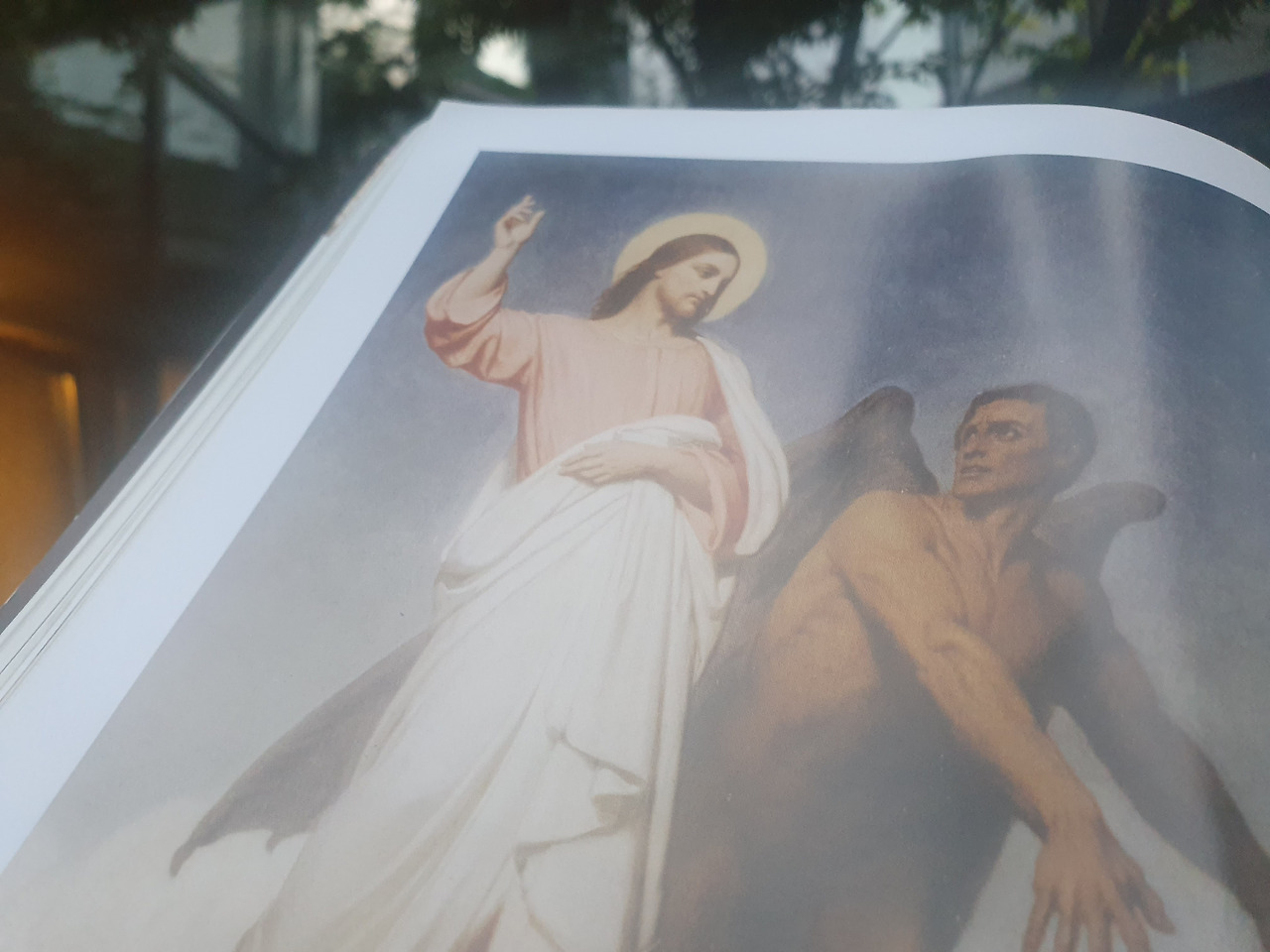 광야의 유혹,예수 그리스도가 광야에서 사탄과 싸우는 모습,프란스 프랑켄의 작품