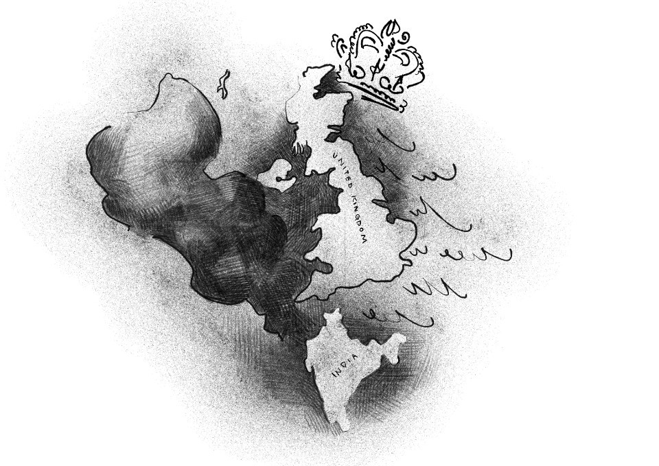 의미하며 인도 지도를 영국의 지도 밑에 위치