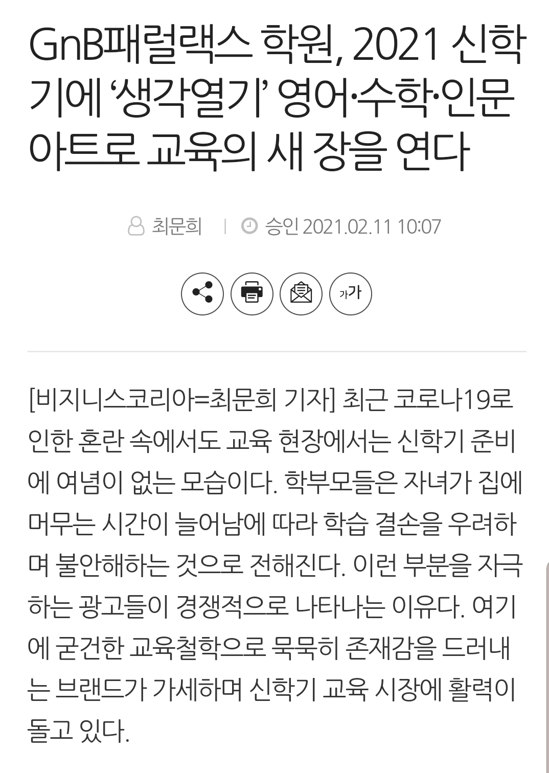 GnB패럴랙스 교육 신문기사