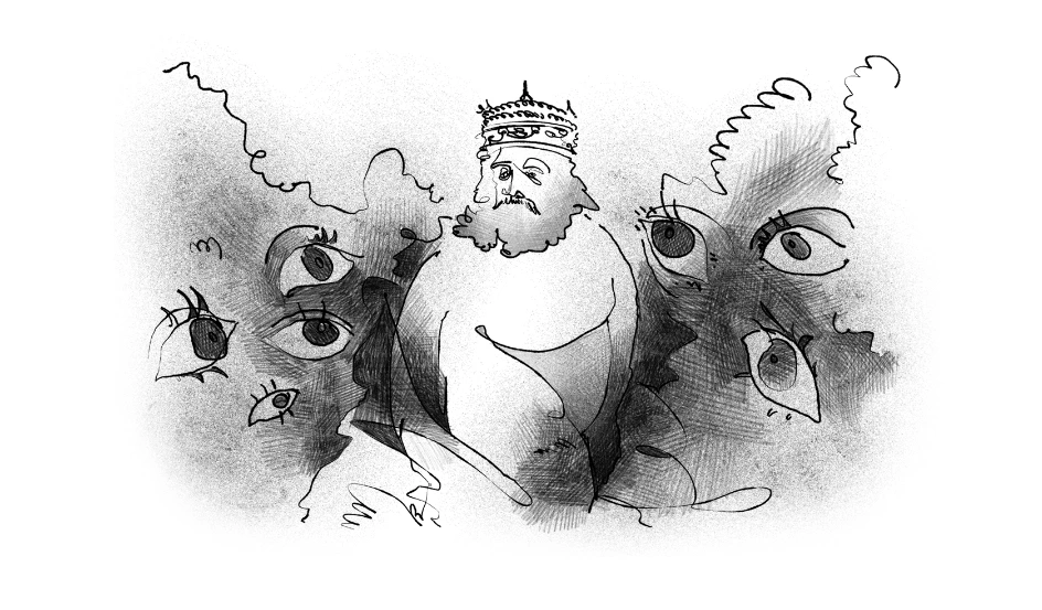 그림은 동화 속에 나오는 벌거벗은 임금님을 통해