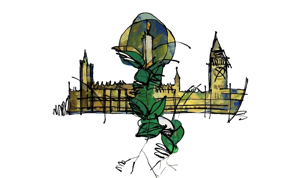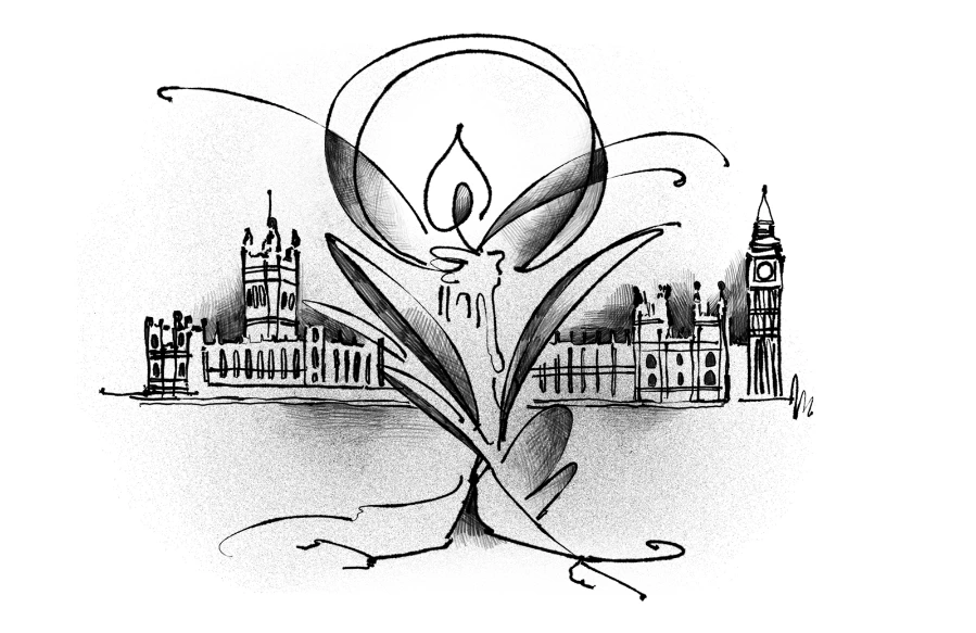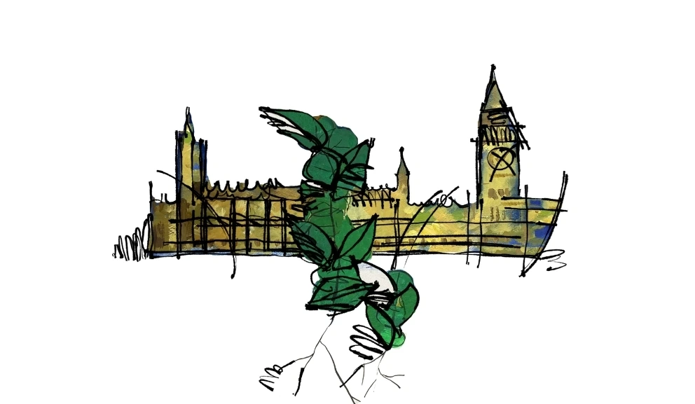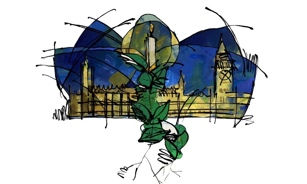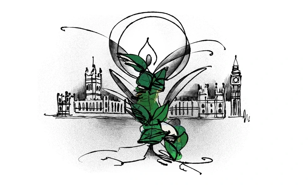 의사당을 양분하듯 중앙으로 피어올라 영국 의사당