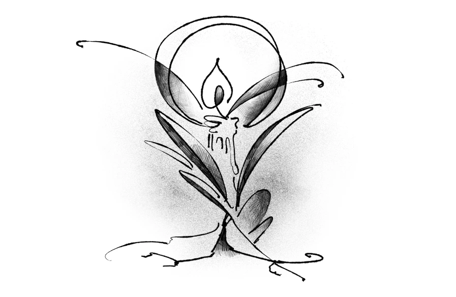꽃 속에서 촛불이 피어오르는 그림이다.