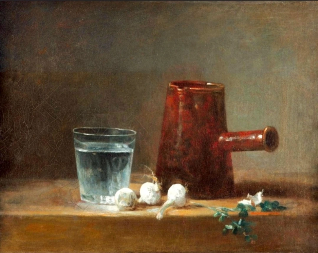 사르댕의 정물화 '물 잔과 커피포트'의 느낌이