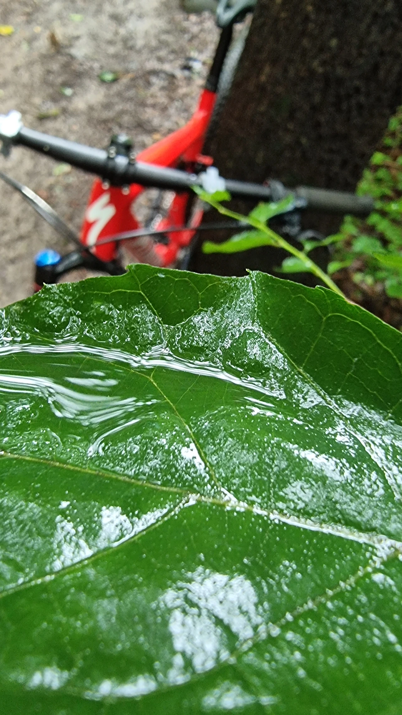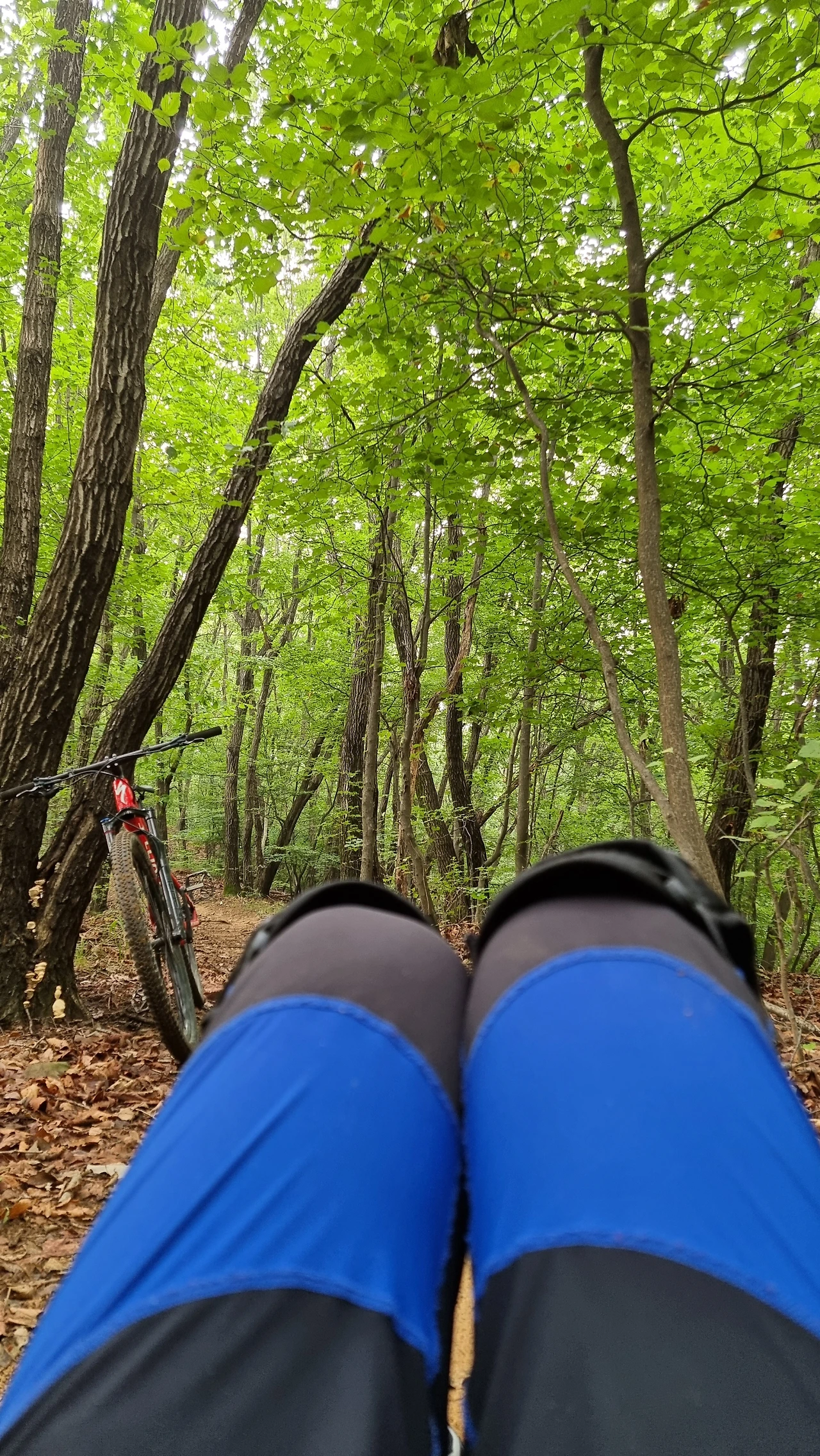 MTB 자전거를 나무 한켠에 기대고