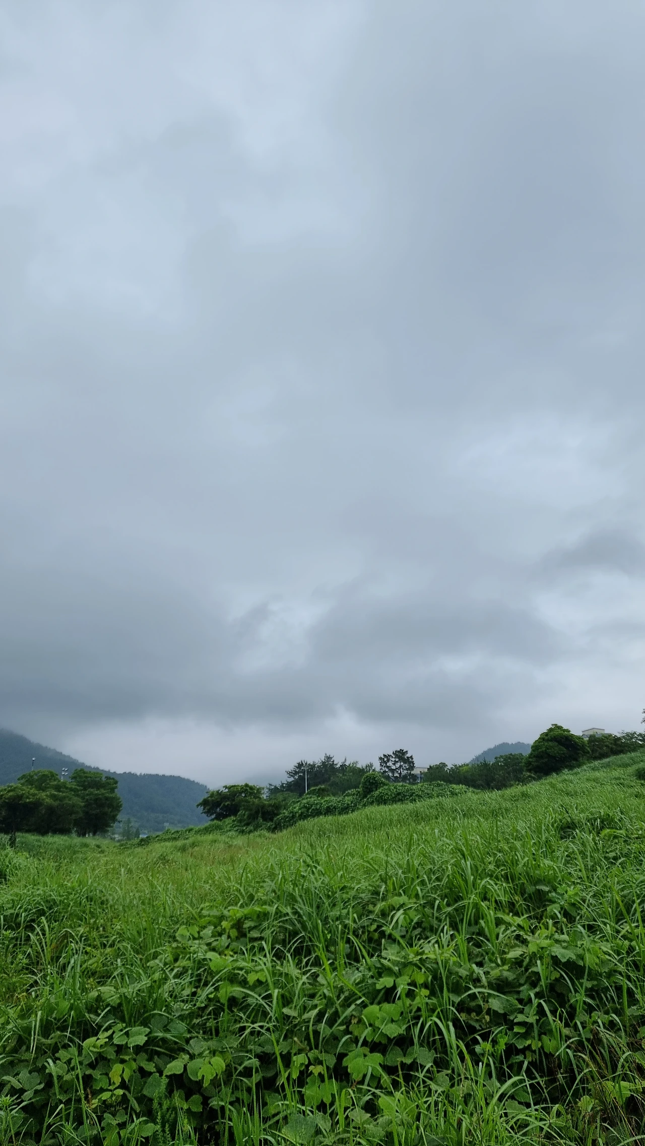 비 오는 한 여름날 숲 속에서 자전거를 타며