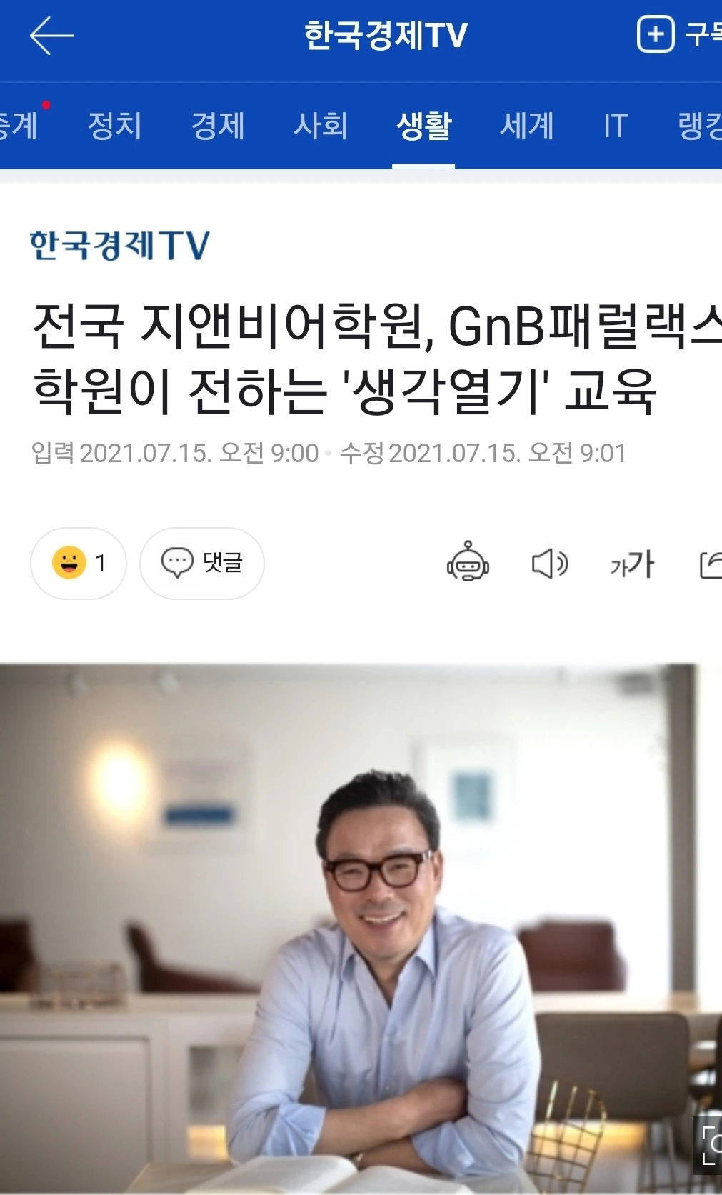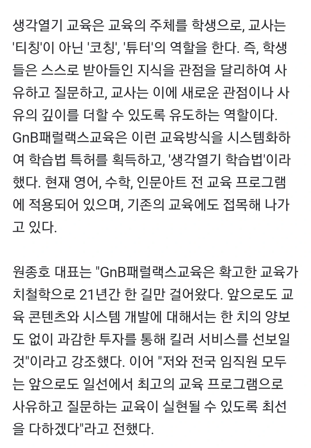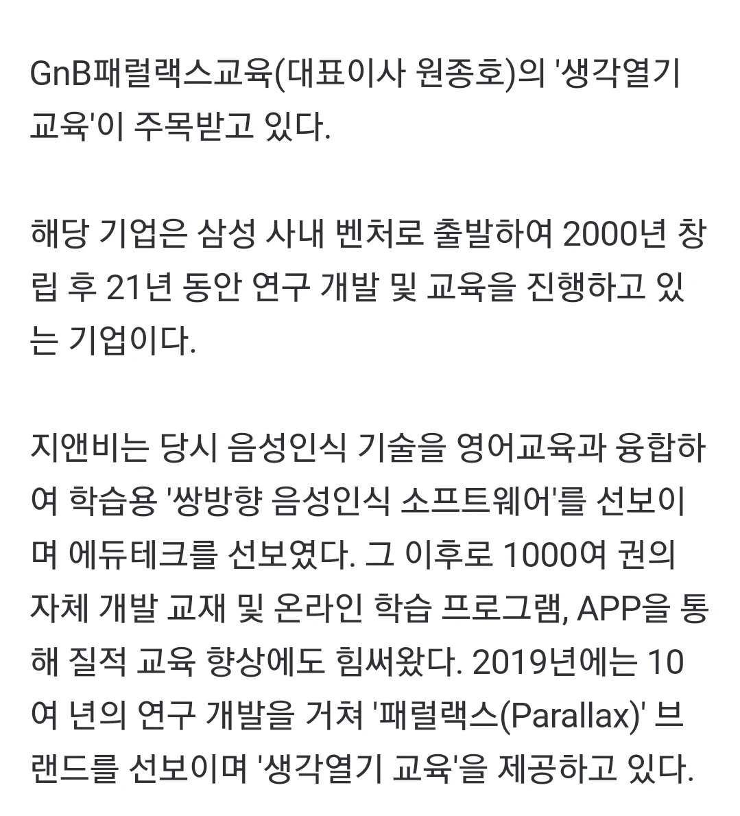 GnB패럴랙스교육 '생각열기'특허 학습법 신문기사
