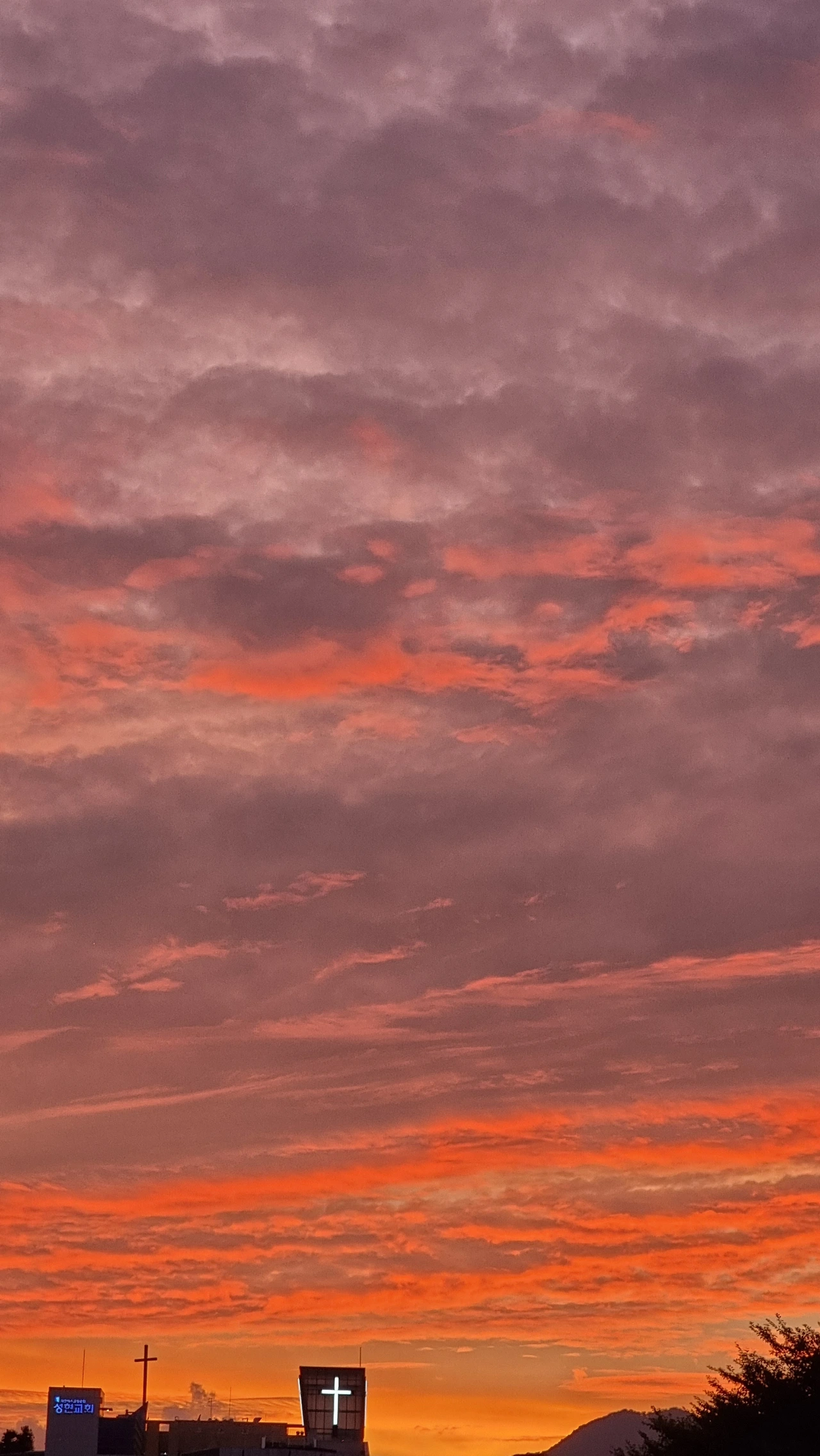 Plato Won 作,자연은 항상 경이롭다. 십자가를 중심으로 붉은 노을이 드리워져 있는 것이 아니라 앵글 각도를 그렇게 잡은 것이다.세상은 해석하기 나름이다.