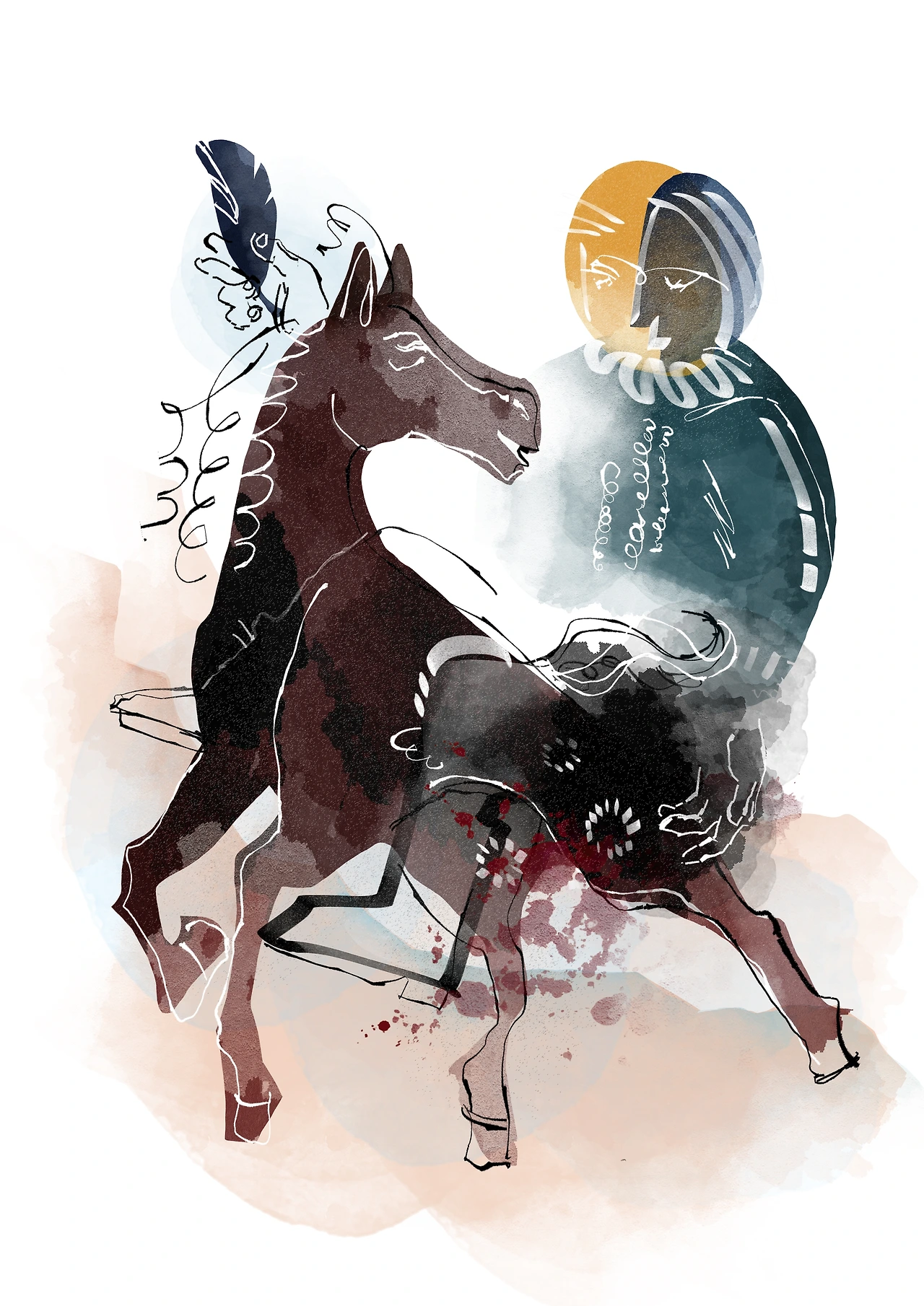 지식인이 말의 올라타 먼 곳을 응시하는