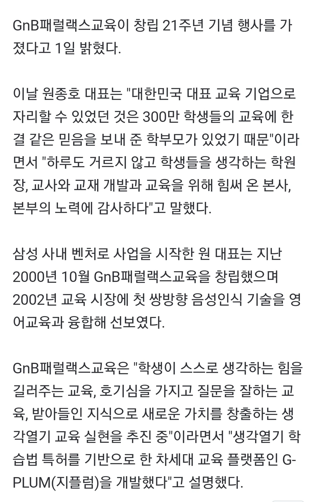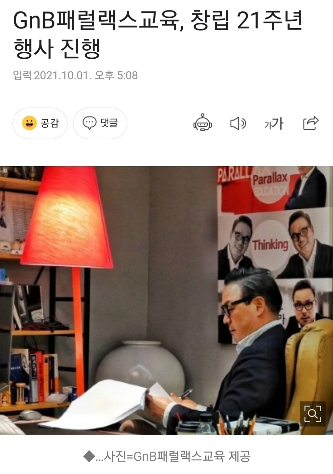 GnB패럴랙스교육,창립 21주년 신문기사