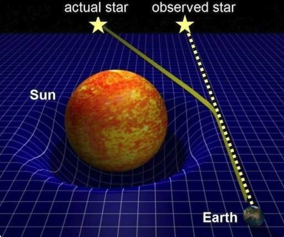 태양 뒤에 숨은 별빛이 공간의 휘어짐을 따라 지구까지 다다른 관측 사진,영국 천문학자 에딩턴이 일식 때 관측한 사진 이해도