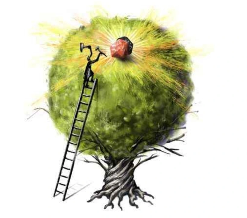 목적론적 사고를 상징한다. 사다리는 논리적 추론적 방법을 통해 목적론적 사고를 실현하는 것을 표현하고 있다.