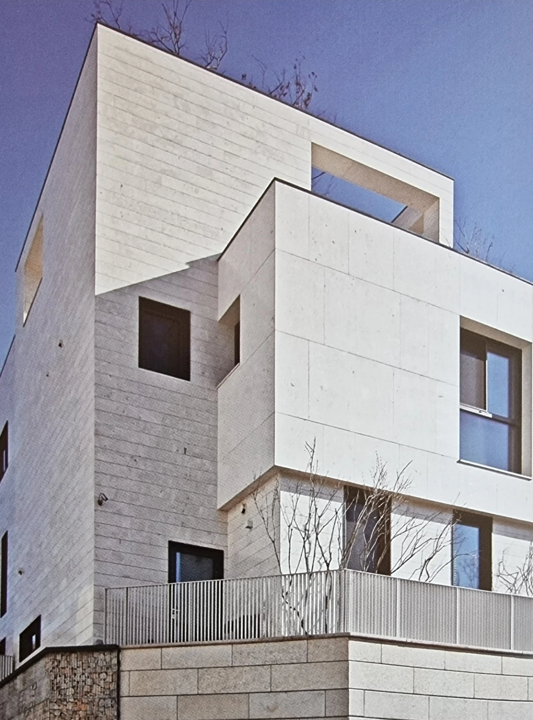 기하학적 사각형 도형을 원근법적 플롯으로 배치한 단독주택,박용성 건축가 作
