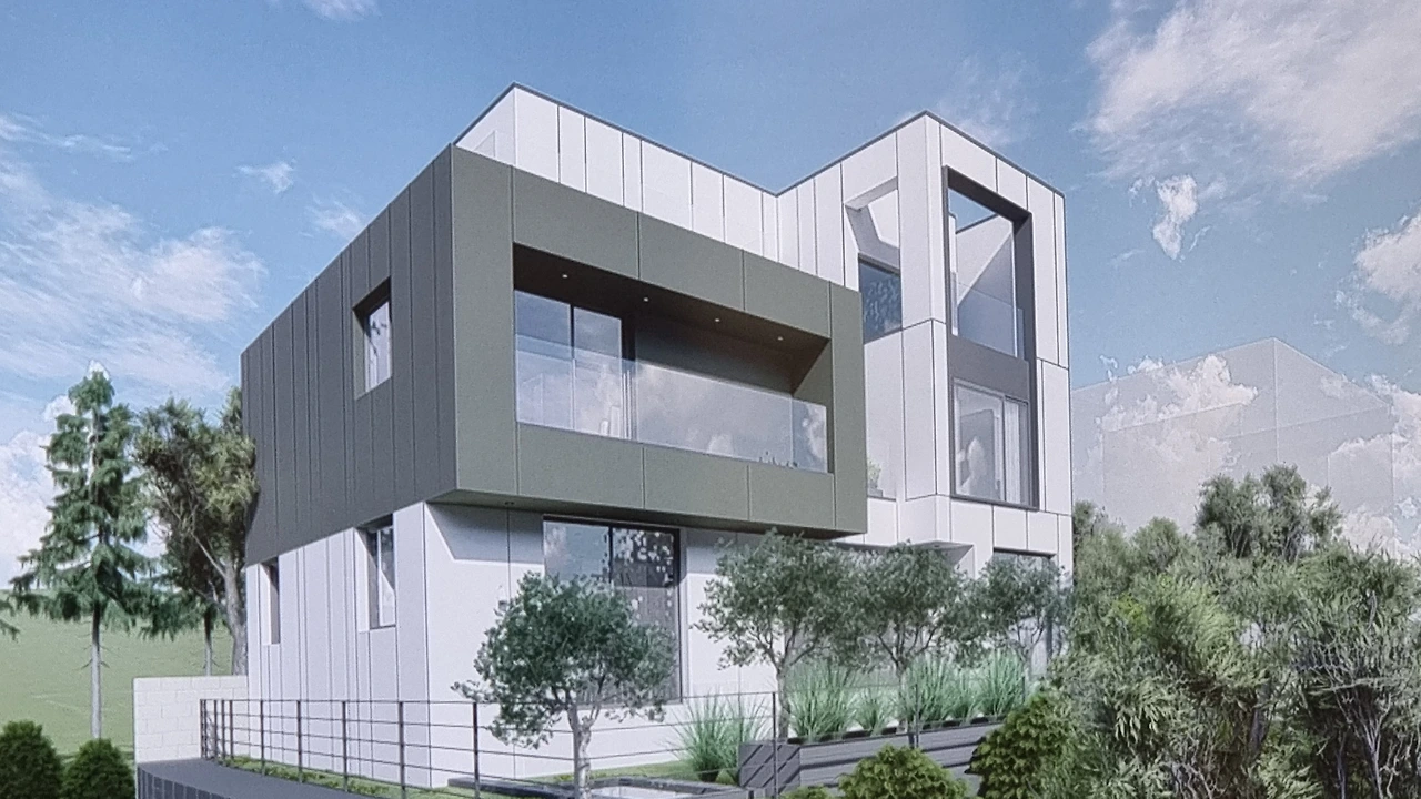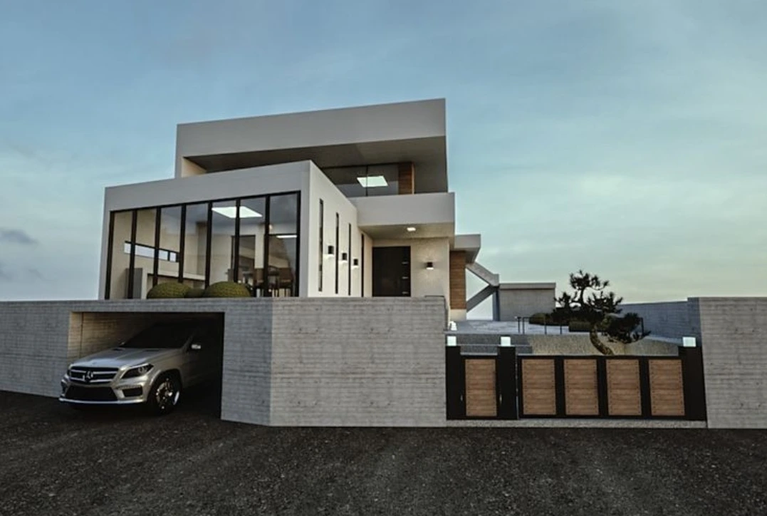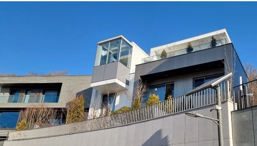기하학적 도형을 방향성을 비틀어 표현한 단독주택