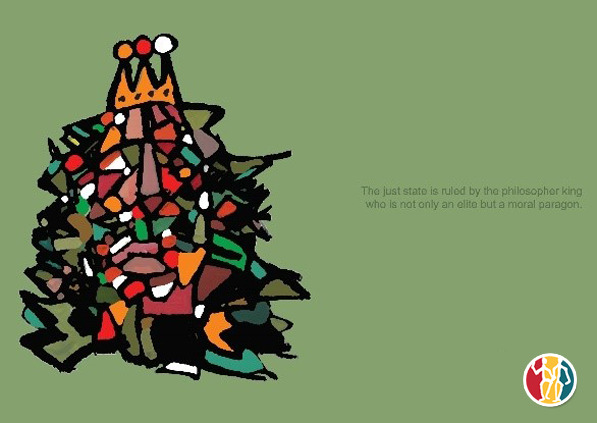 플라톤이 말하는 이상적인 국가는 지혜를 가진 철인에 의해 통치되며, 용기를 지닌 전사 계급에 의해 지켜지고, 다수를 차지하는 생산자 계급이 필요한 물품을 생산하면서 각자 자기 역할에 충실할 때 실현됩니다.