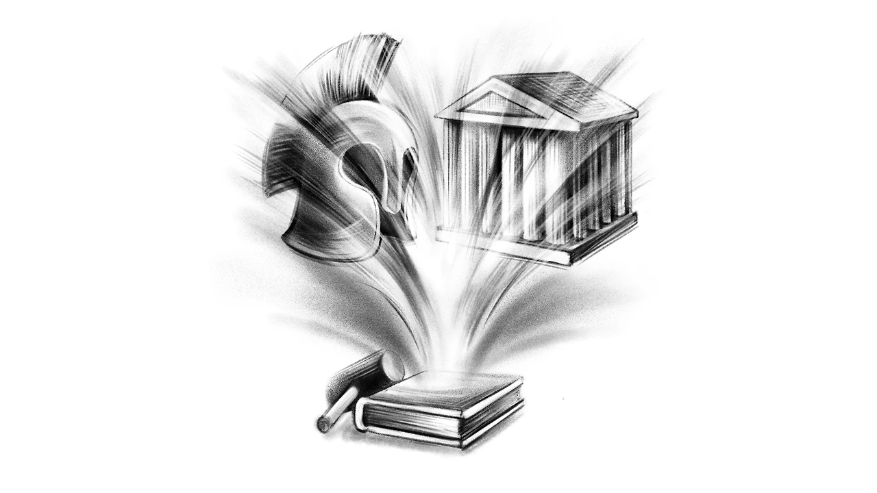혼합정을 정치학 책과 법전이 에워싼 모습이고