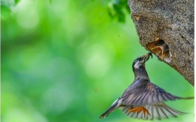 지인 분이 제공한 사진입니다."저희집 참느름나무에 찌르레기가 둥지를 틀었습니다. 그 둥지는 지난해 딱다구리가 구멍뚫고 새끼를 낳은 곳인데 올해 임자가 바뀌었군요.^^ "