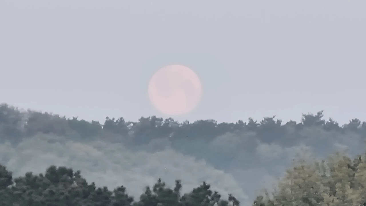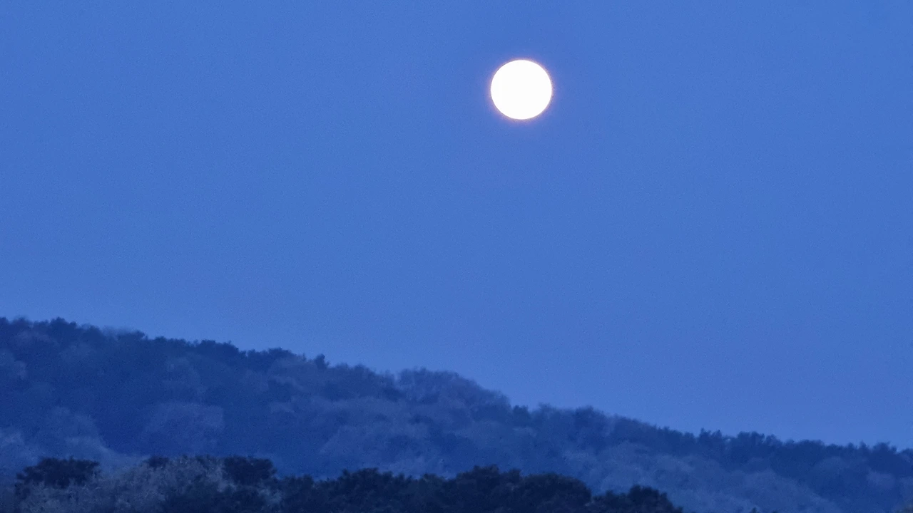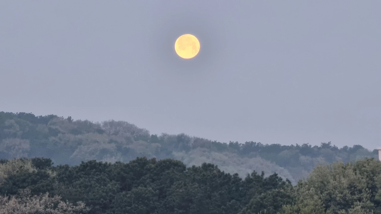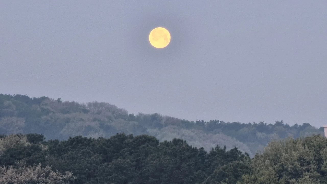 Plato Won 作,카아~~~<부지런한 보름달> 보름달이 새벽이 되어서야 이제 하루를 마감하고 새벽잠을 자러 가누나.