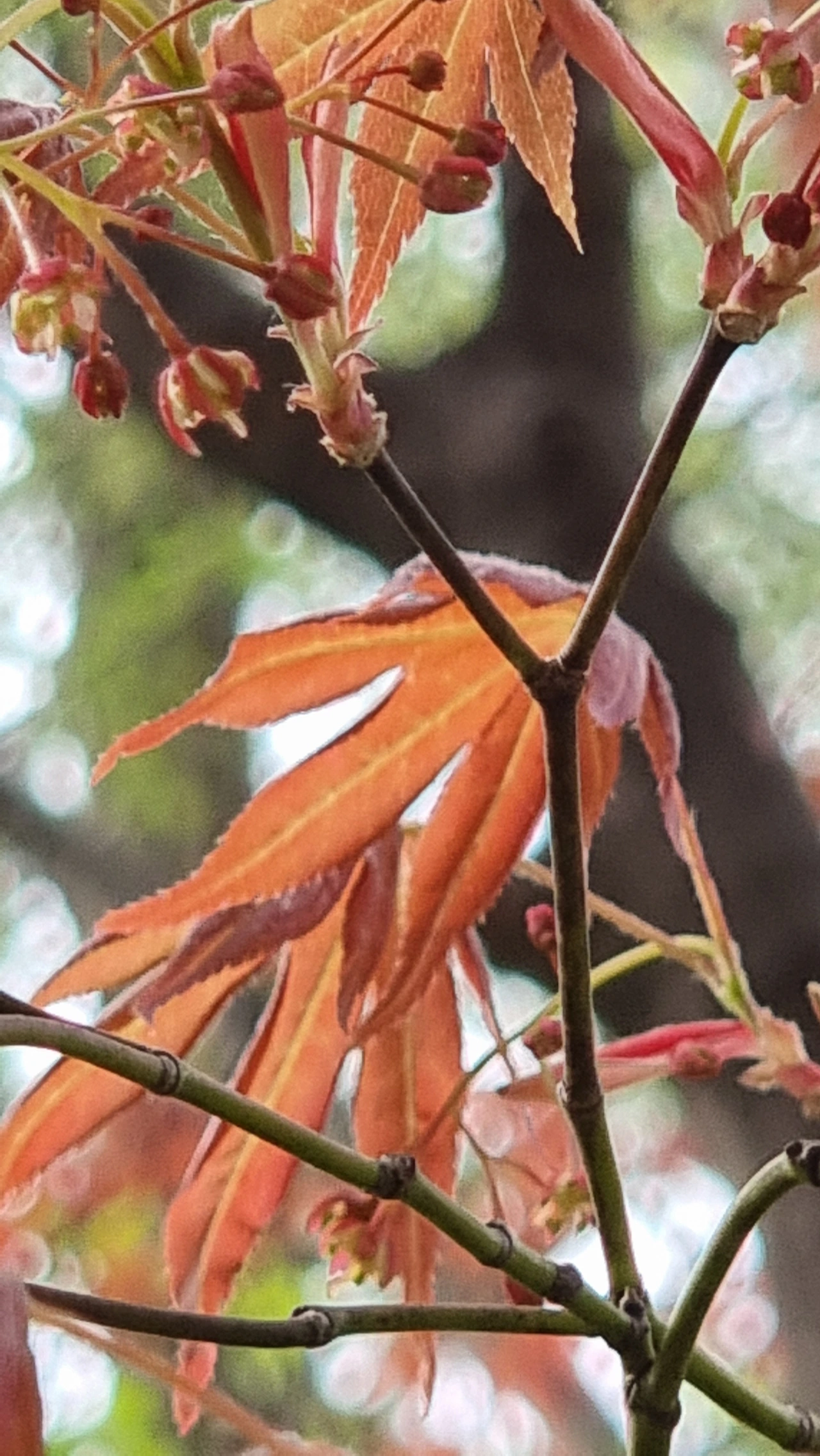 Plato Won 作,붉은 단풍잎은 녹색 자연에 안주한다.