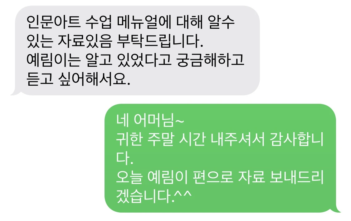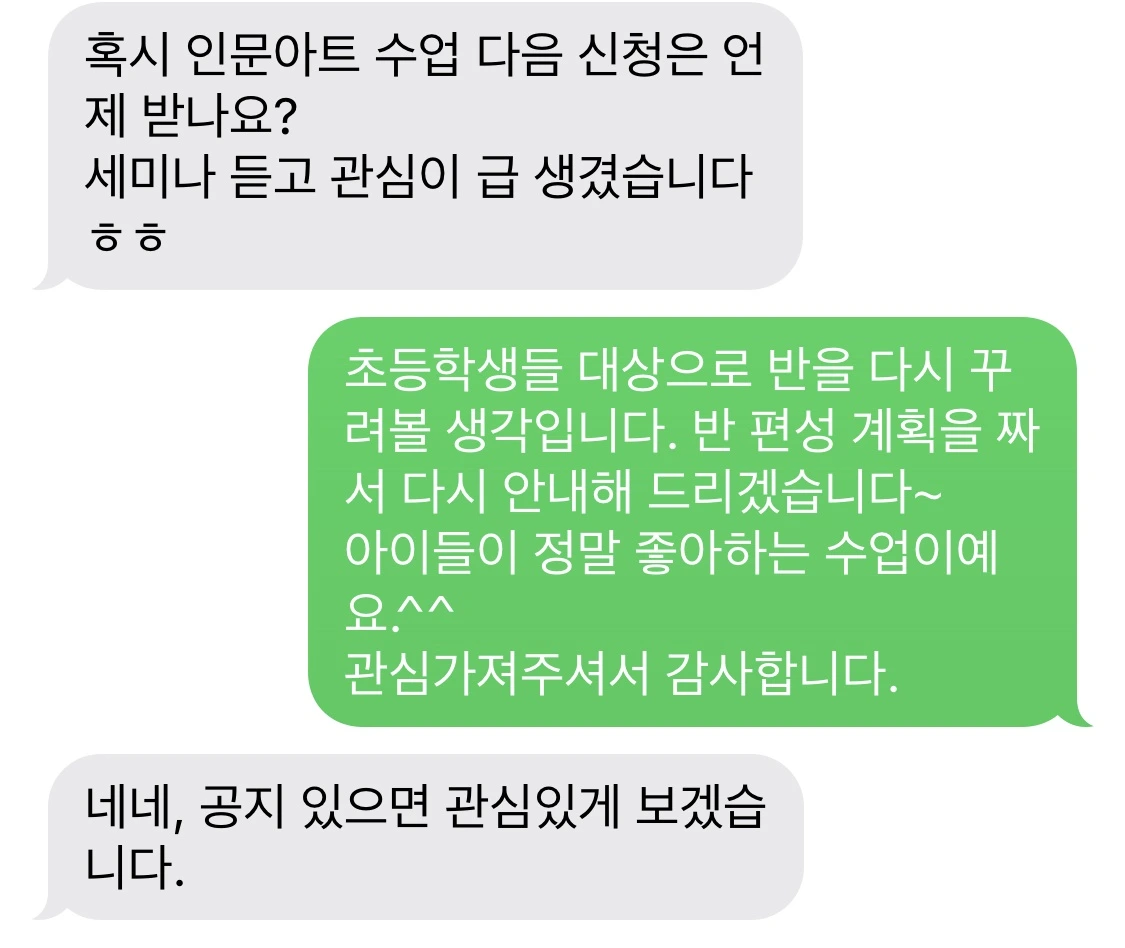"~~ 저희 아이는 매일 인문아트 수업만 하면