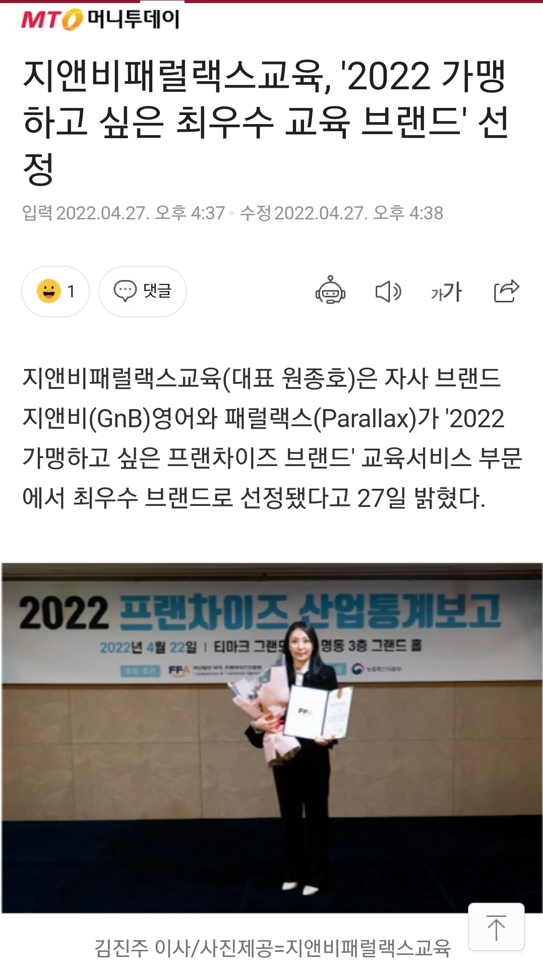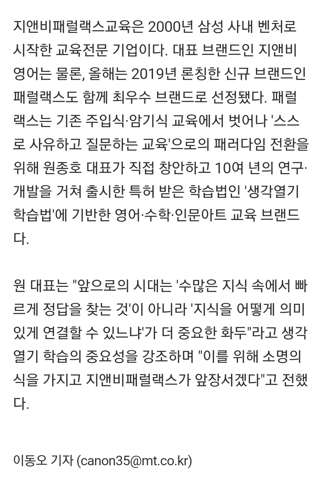 지앤비패럴랙스교육,신문기사