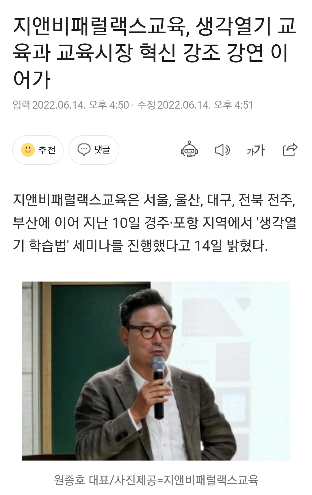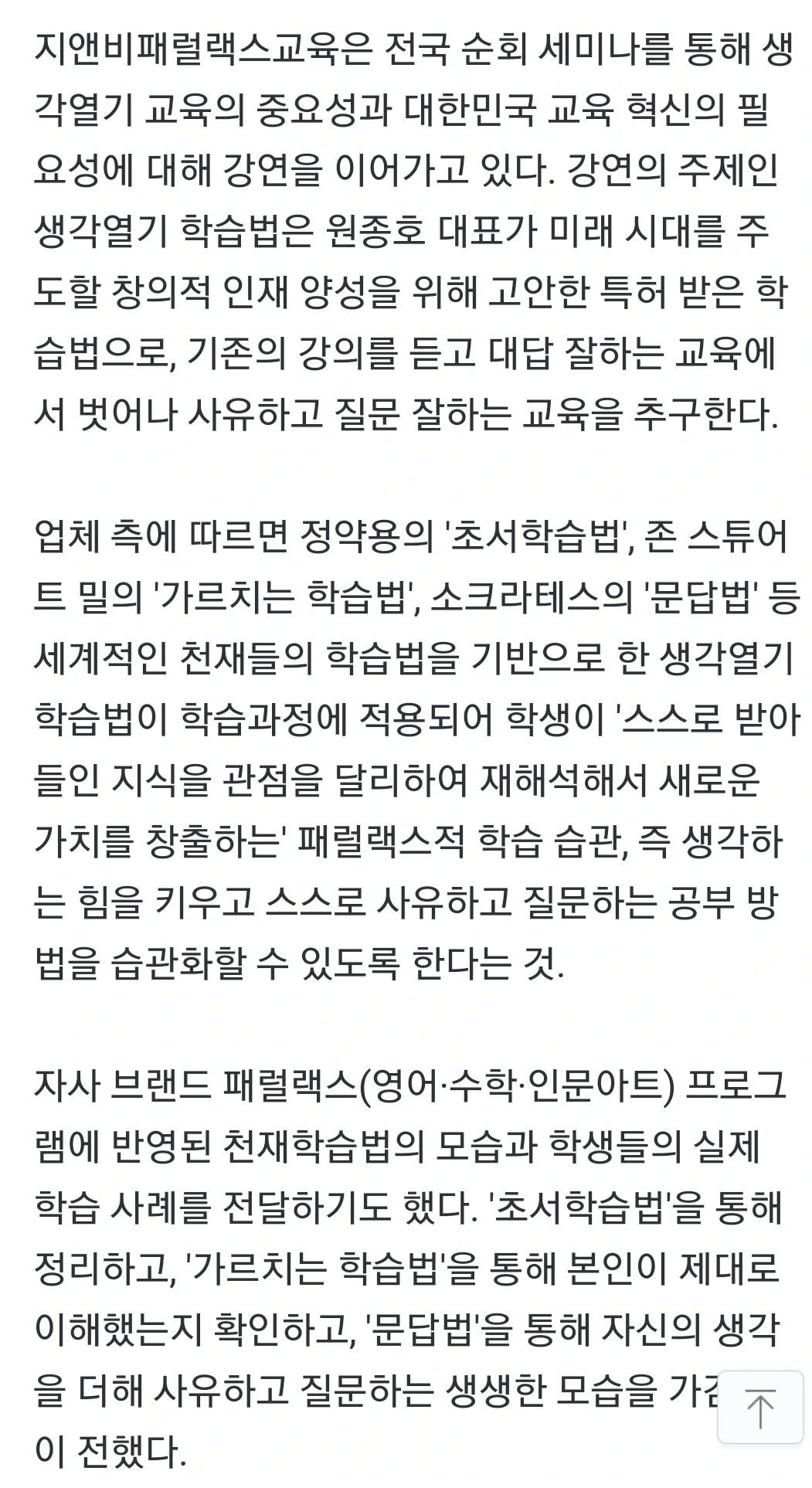 지앤비패럴랙스교육,생각열기 교육 전국 강연